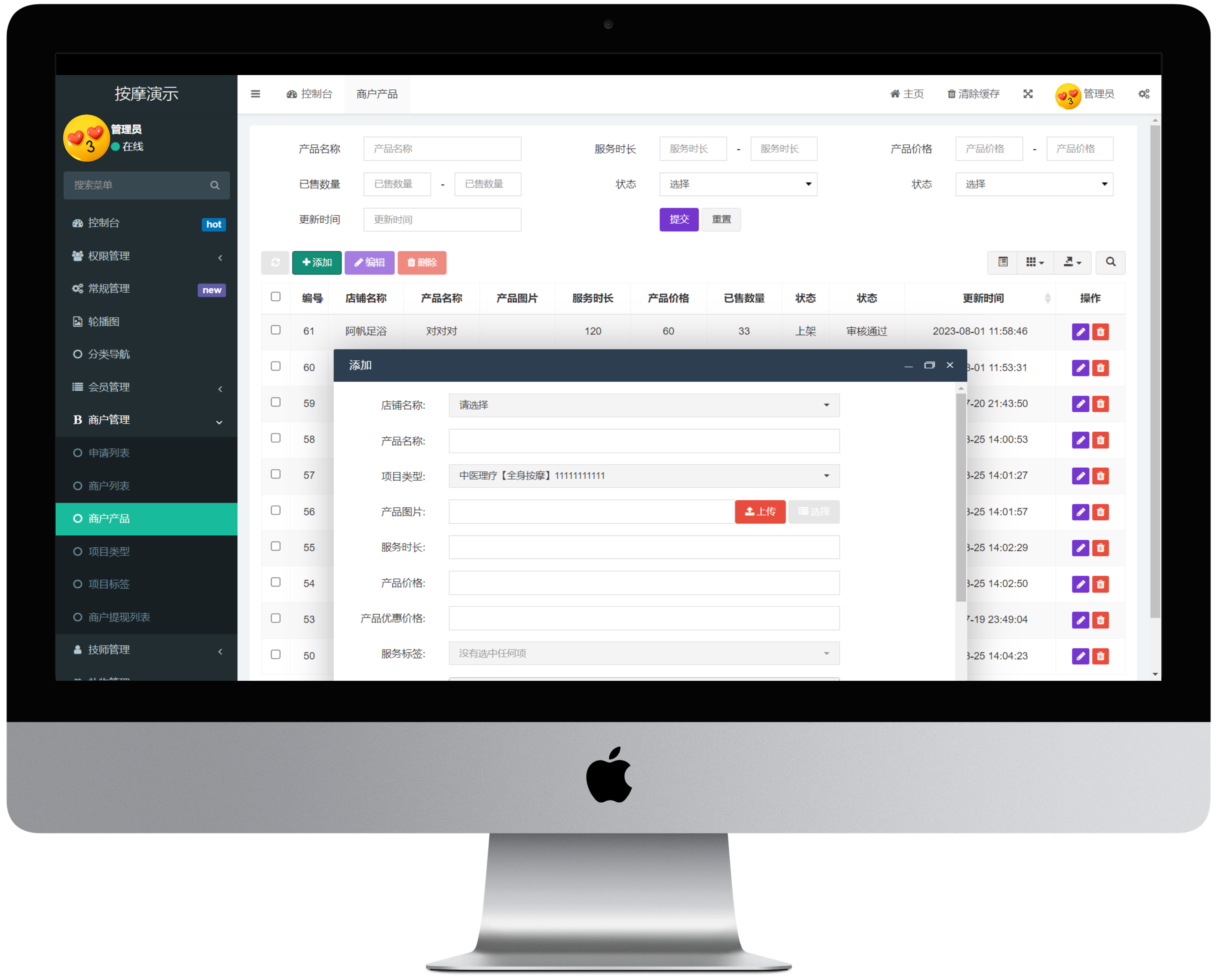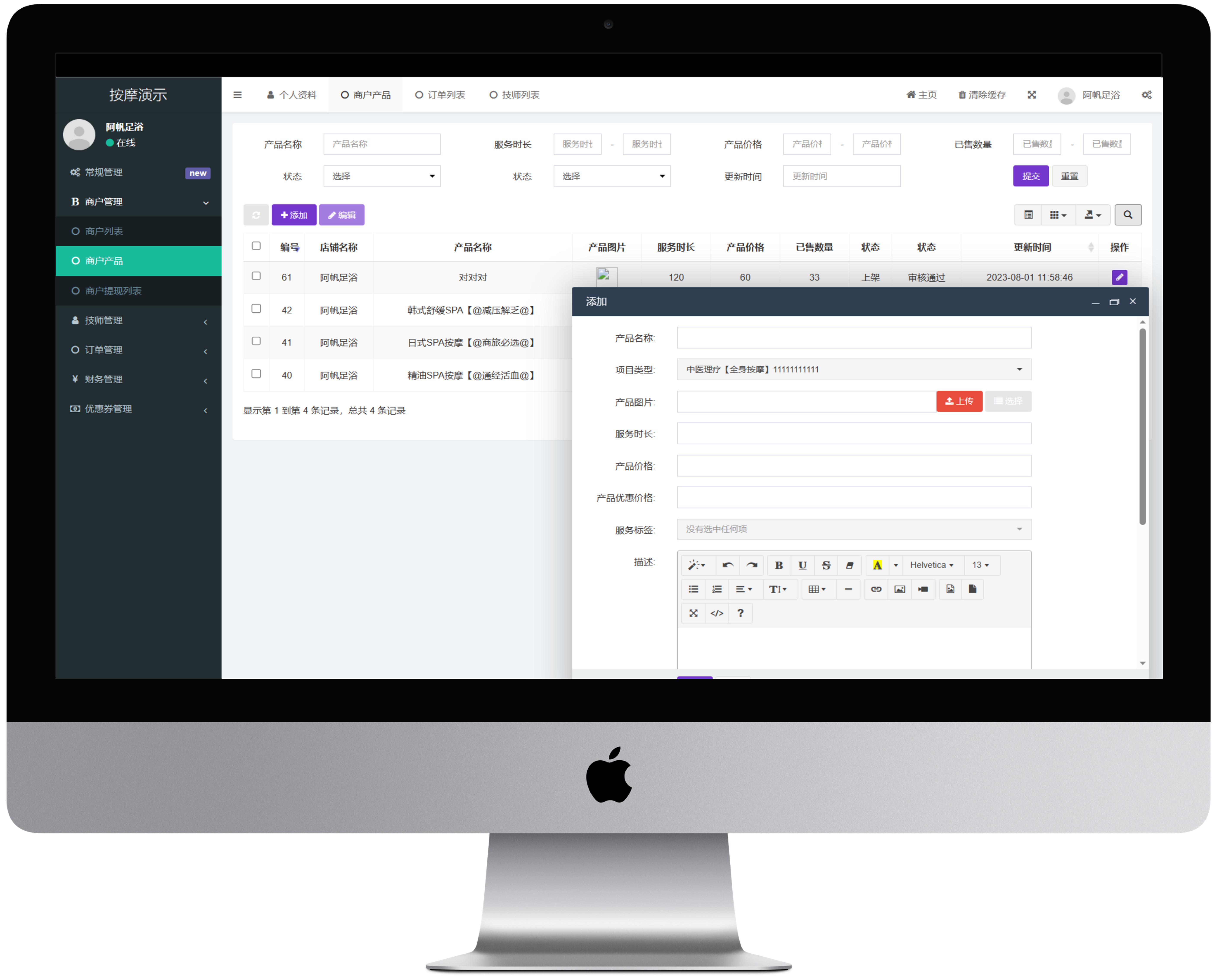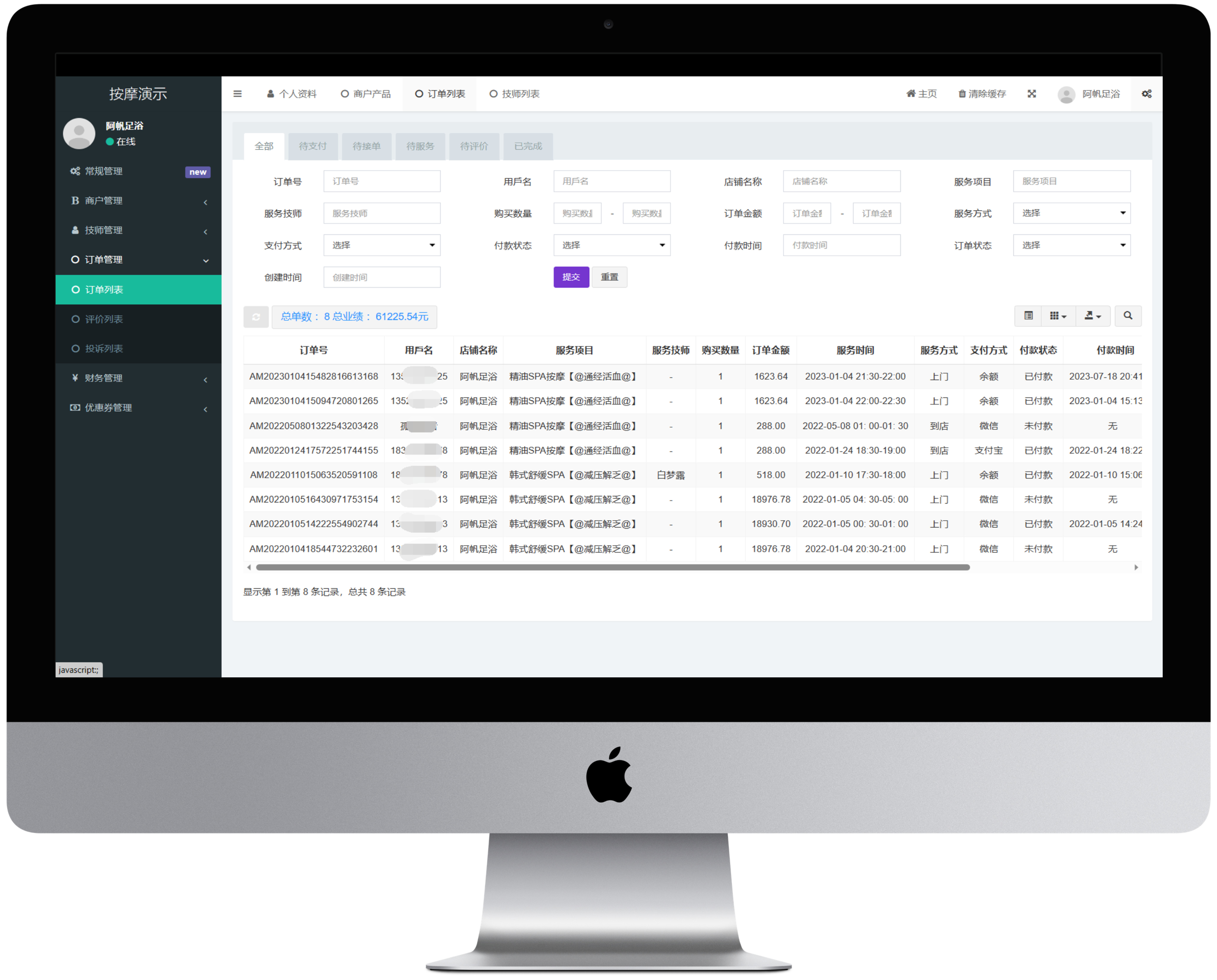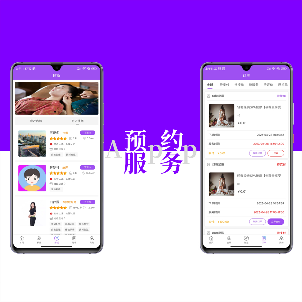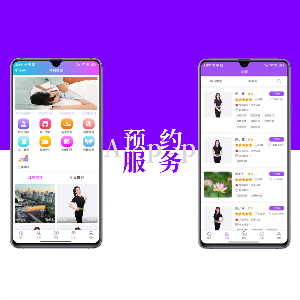 功能点:全国地区,上门/到店服务;同城附近技师列表、同城店铺列表,专区分类,优惠折扣消费券,关注、赠送礼物,技师入驻,商家入驻,代理加盟,订单列表,个人钱包,二级推广引流,深层认证,智能派单,智能排队,技师端,商户PC端,代理端,一键报警等。