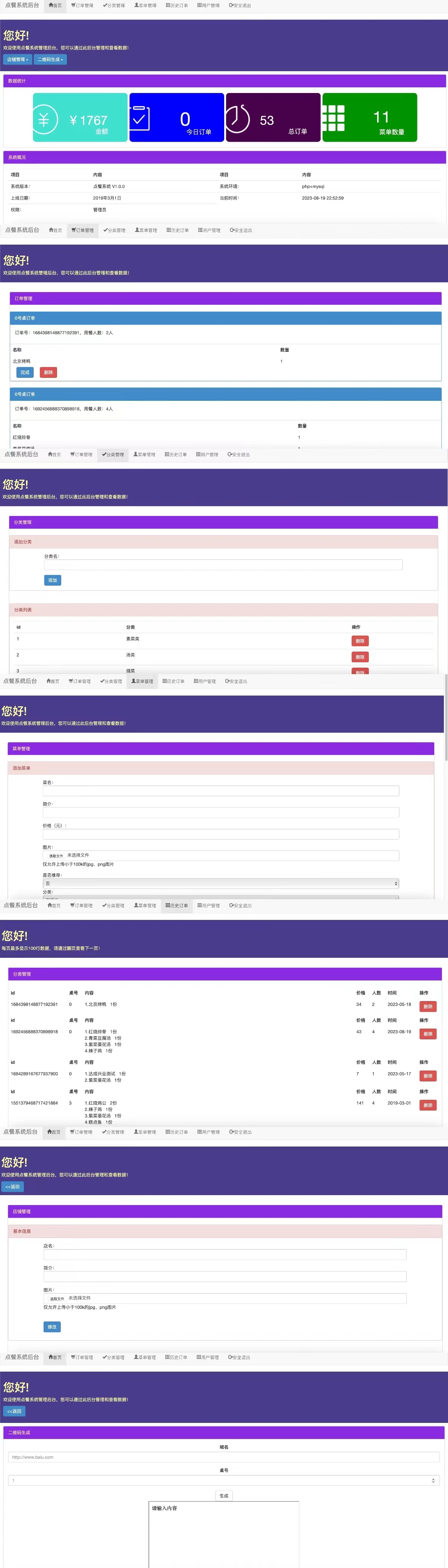 3. 登录后台可管理分类、菜单、以及点餐信息