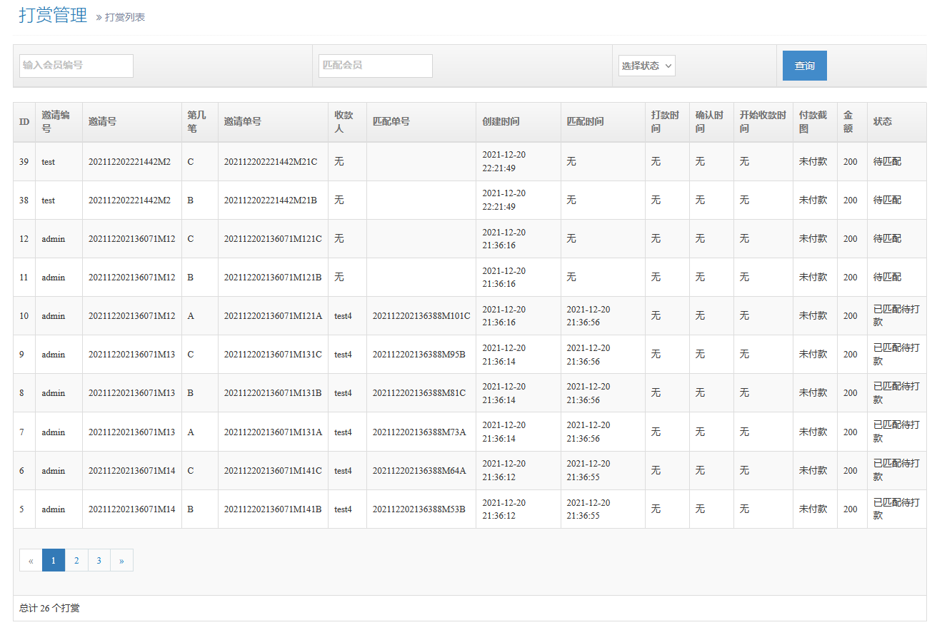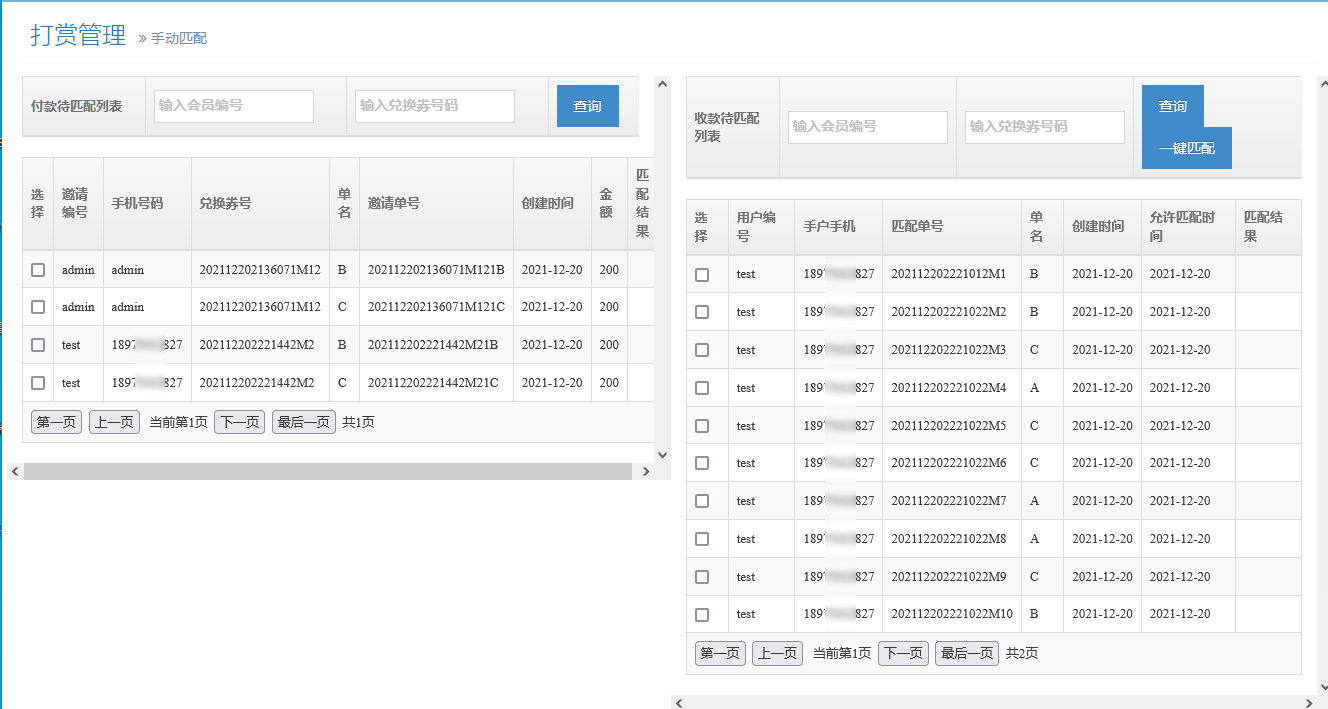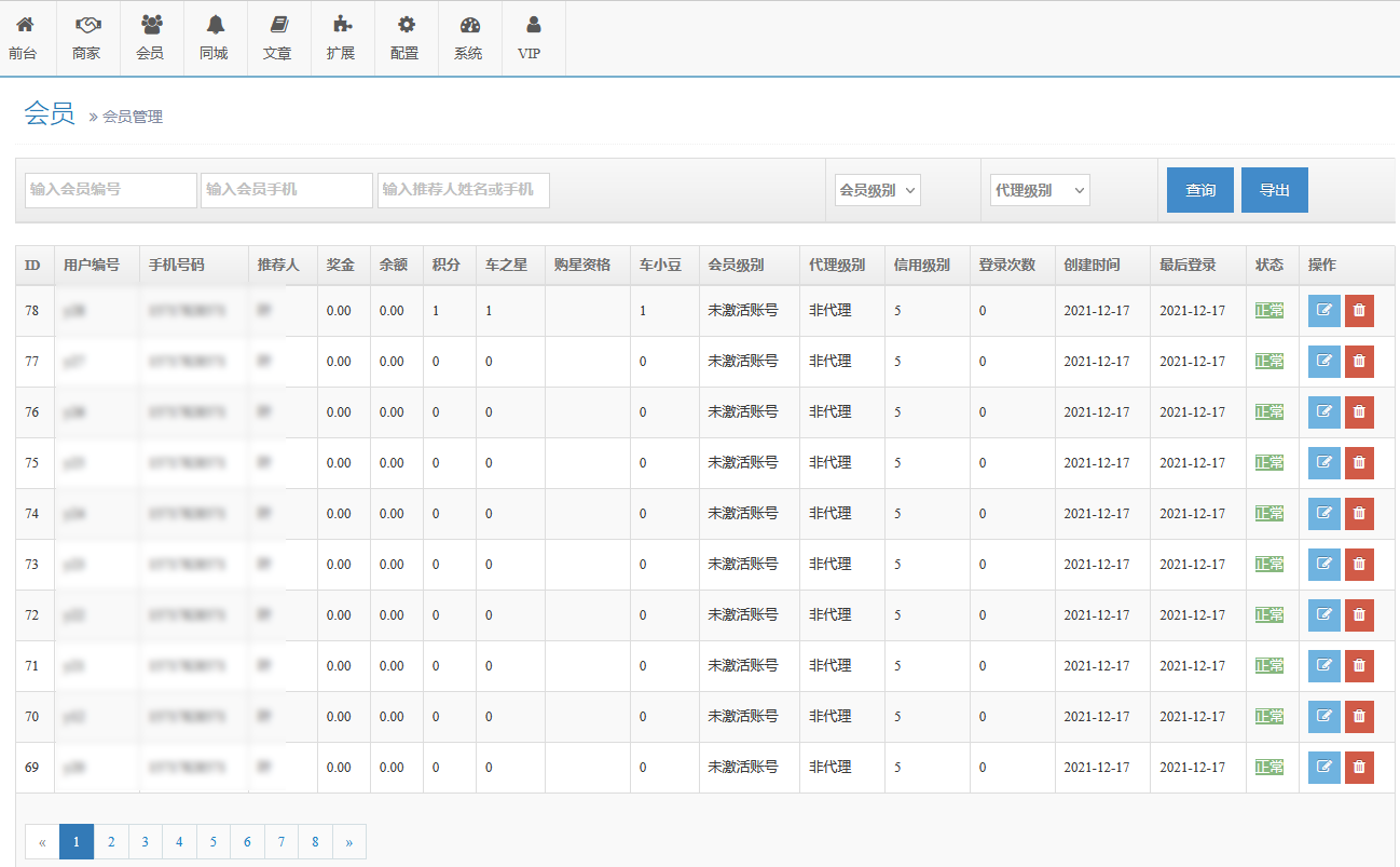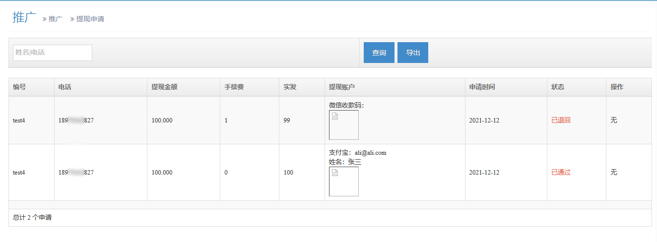 | 名称 | 功能 | 会员互转 | 来源 | 提现 |