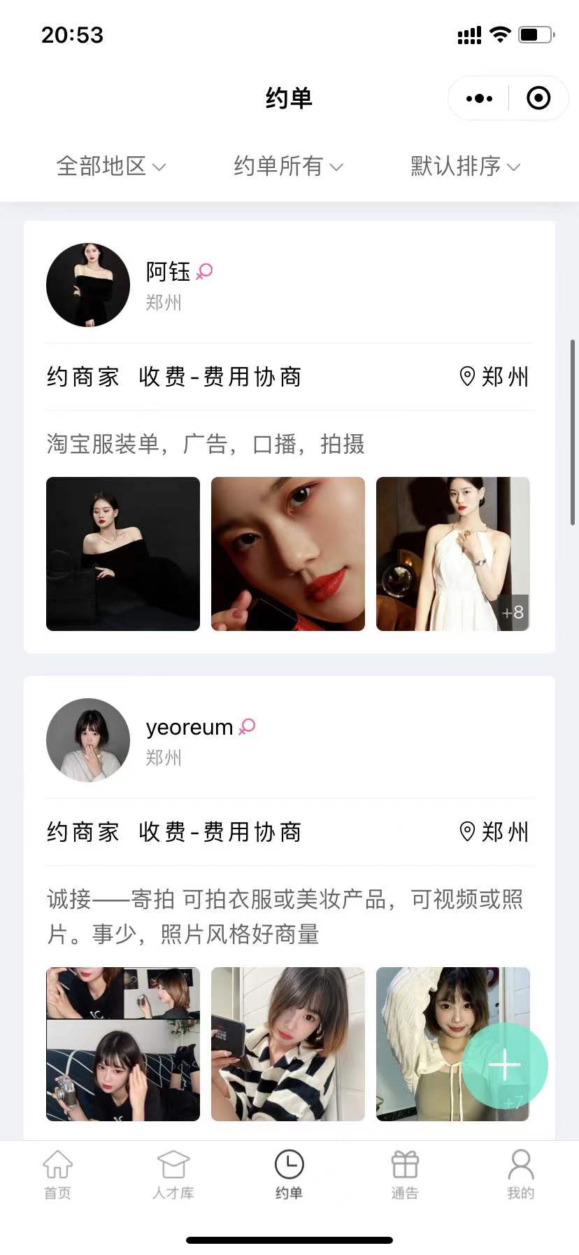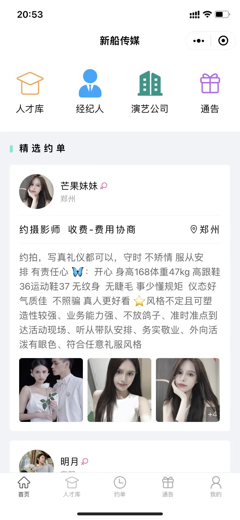 通告中心:商家、经纪人、活动方可在平台发布通告内容,相关从业人员可查看发布者联系方式。