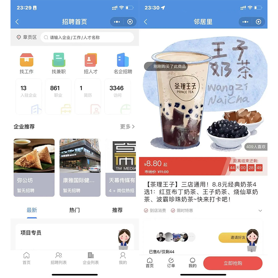 程序功能丰富,包括:同城分类信息、同城好店、同城合伙人、同城招聘、同城卡、同城活动、同城优惠抢购、同城商城、同城头条、同城拼团、同城砍价、同城电话本、同城认证、同城签到、同城拼车、同城红包、同城子站点、同城相亲、同城交友等模块,后期还将持续升级更多功能。
