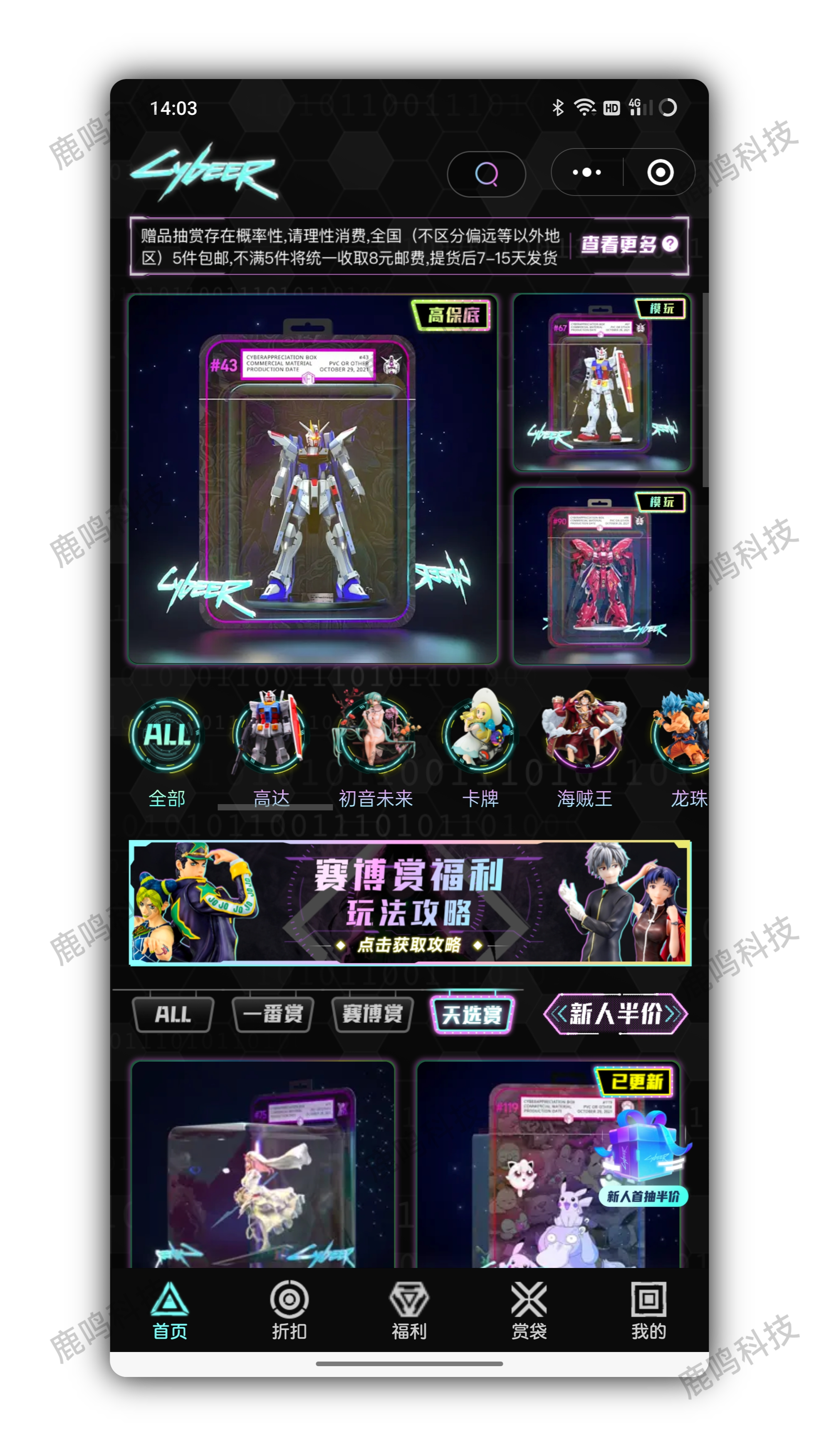 赛博赏功能描述: 番赏盲盒三维建模盲盒场景成品番赏盲盒小程序源码一番赏无限赏N次赏多种模式结合,番赏盲盒小程序开发,炫酷盲盒Ul界面开发,三维建模盲盒场景,成品番赏盲盒源码功能齐全,新人半价、折扣券、无门槛券、优惠券、一番赏、无限赏、N次赏(当前详细概率公示,每抽一次概率提升)、Roll房每周福L房、活动口令、普/高等级奖励、每日/周任务、赏袋管理、保险柜、商品提货,多件包邮、邀请返佣、抽奖升级、VIP会员权益,用户等级权益,新人半价,邀请码绑定……等