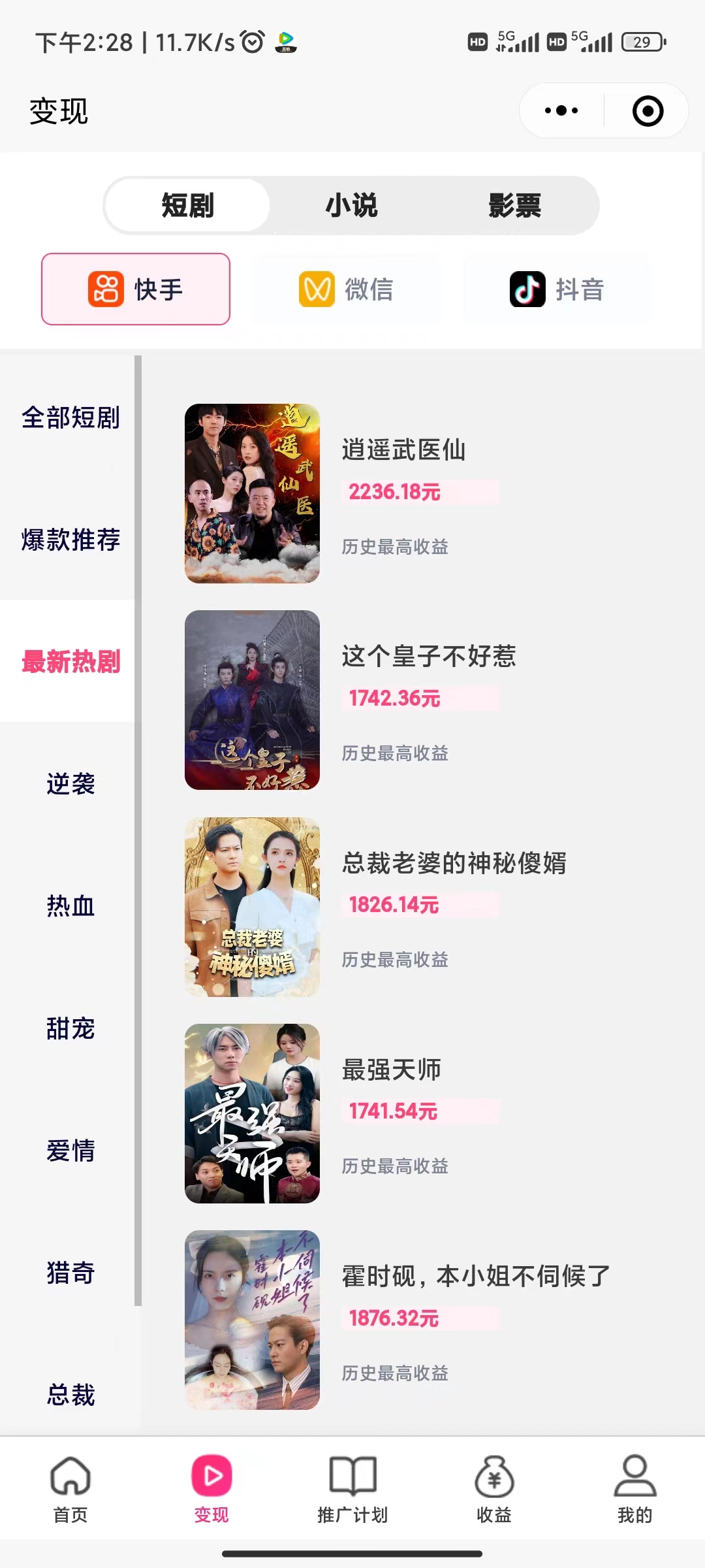 1.汇集了抖音,快手,视频号三个平台的短剧功能