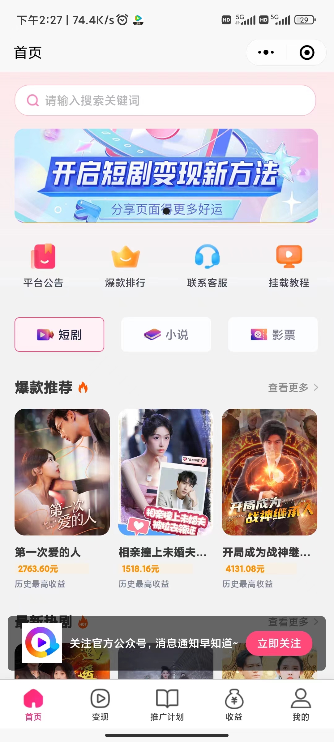 短剧小说电影票cps分发抖音快手视频号公域变现系统