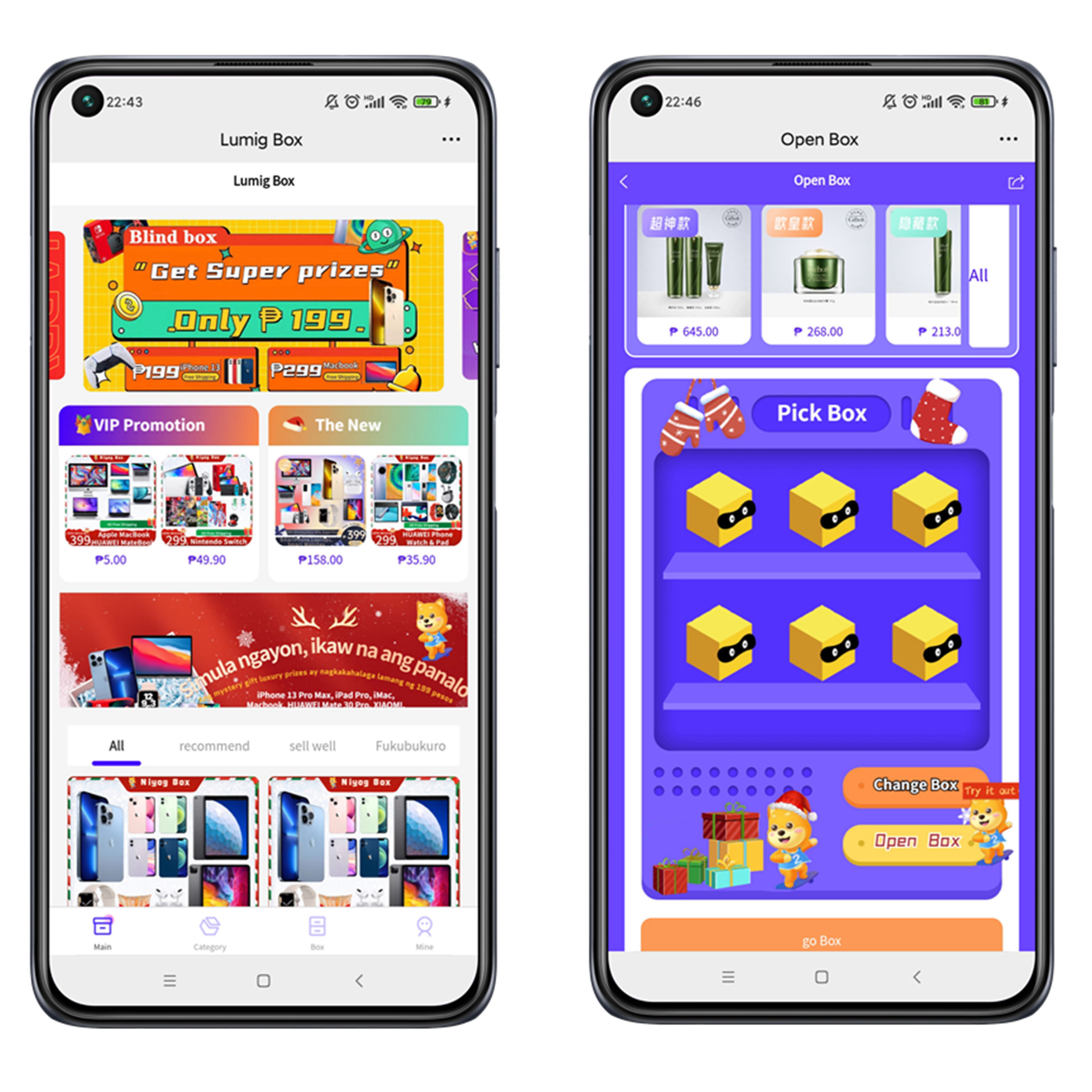 国际版盲盒商城抽奖系统APP+h5盲盒商城源码安卓+IOS双端APP盲盒,英文盲盒源码搭建,支持wechat/Gcash/Grabpay.