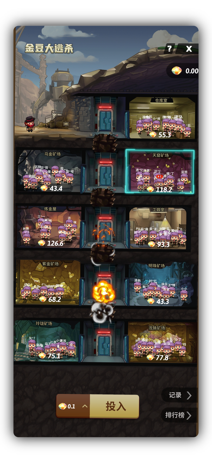 几个小游戏都有,运动会,大逃杀,斗猿场,降妖塔,老虎j。 目前是嵌入在我这个盲盒APP里面的。