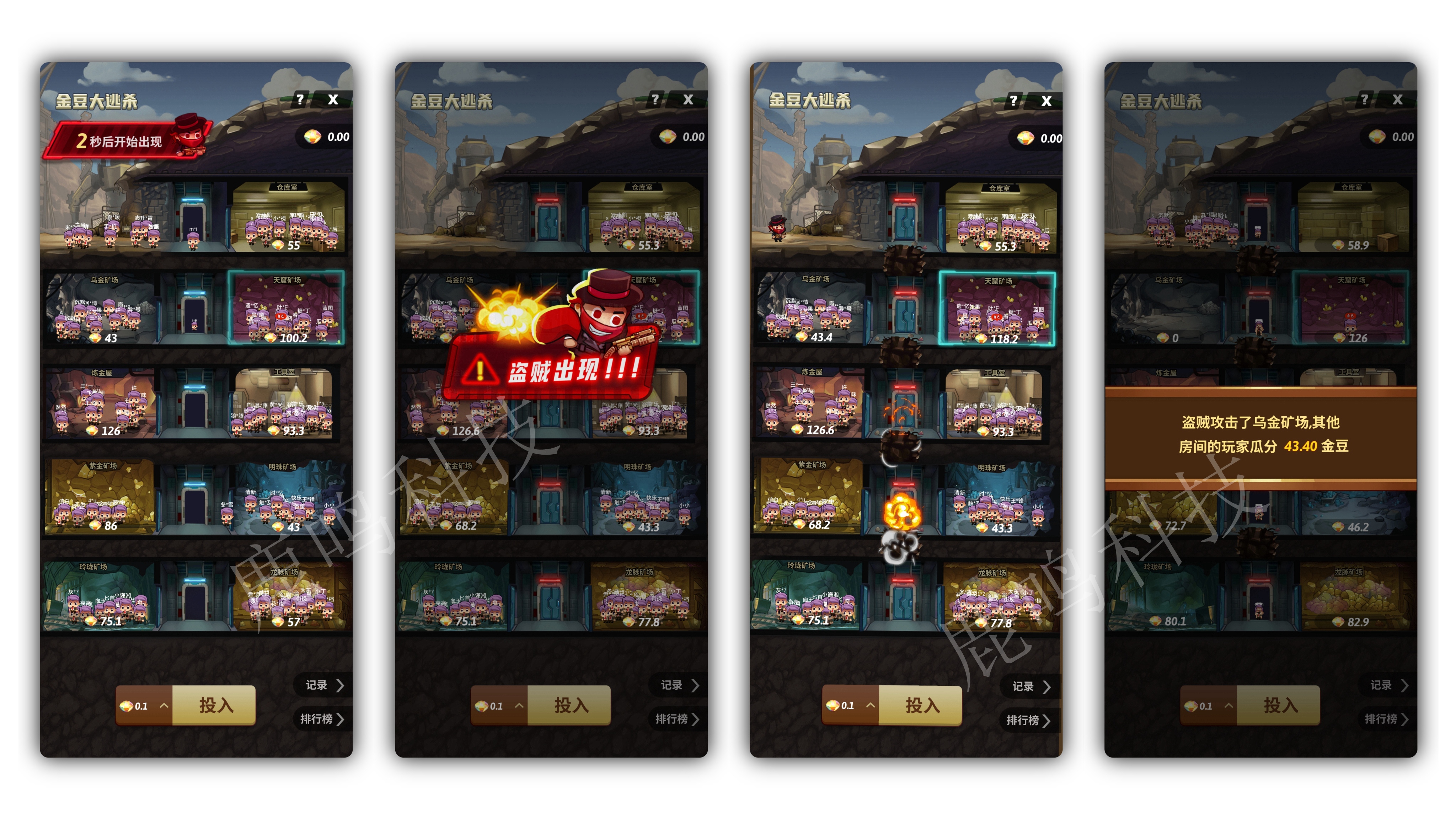 潮玩宇宙大逃杀小游戏模块成品源码,可嵌入任何平台系统,增加用户粘性,消除泡沫,短视频直播引流。 玩家选择一间房间躲避杀手,满足人数后,杀手随机挑选一个房间杀掉里面所有的参与者,其他房间的幸存者平均瓜分被杀掉房间的元宝。 玩家只能选择一间房间躲避杀手,玩家选中房间后在倒计时结束前都可以切换不同房间。