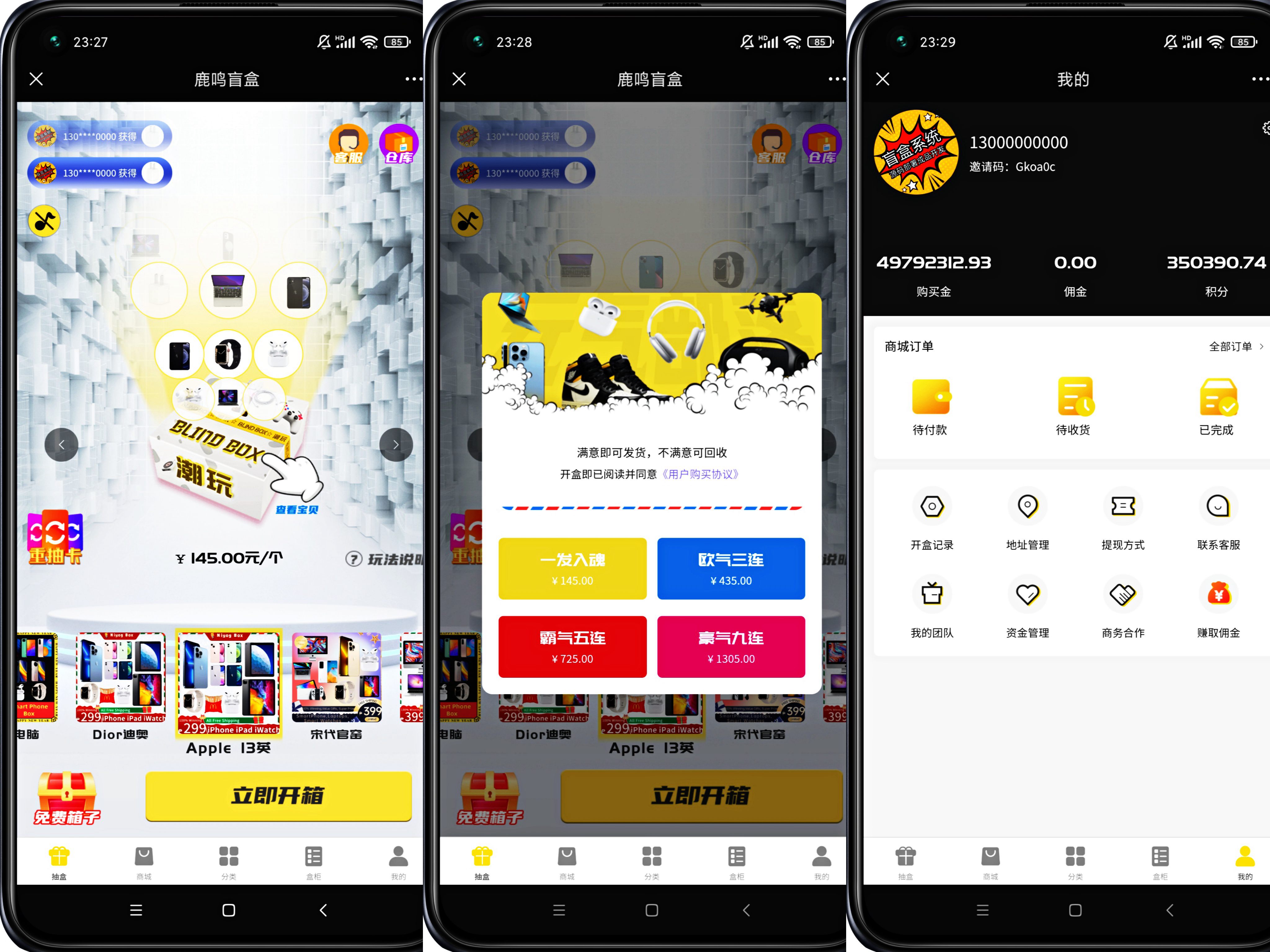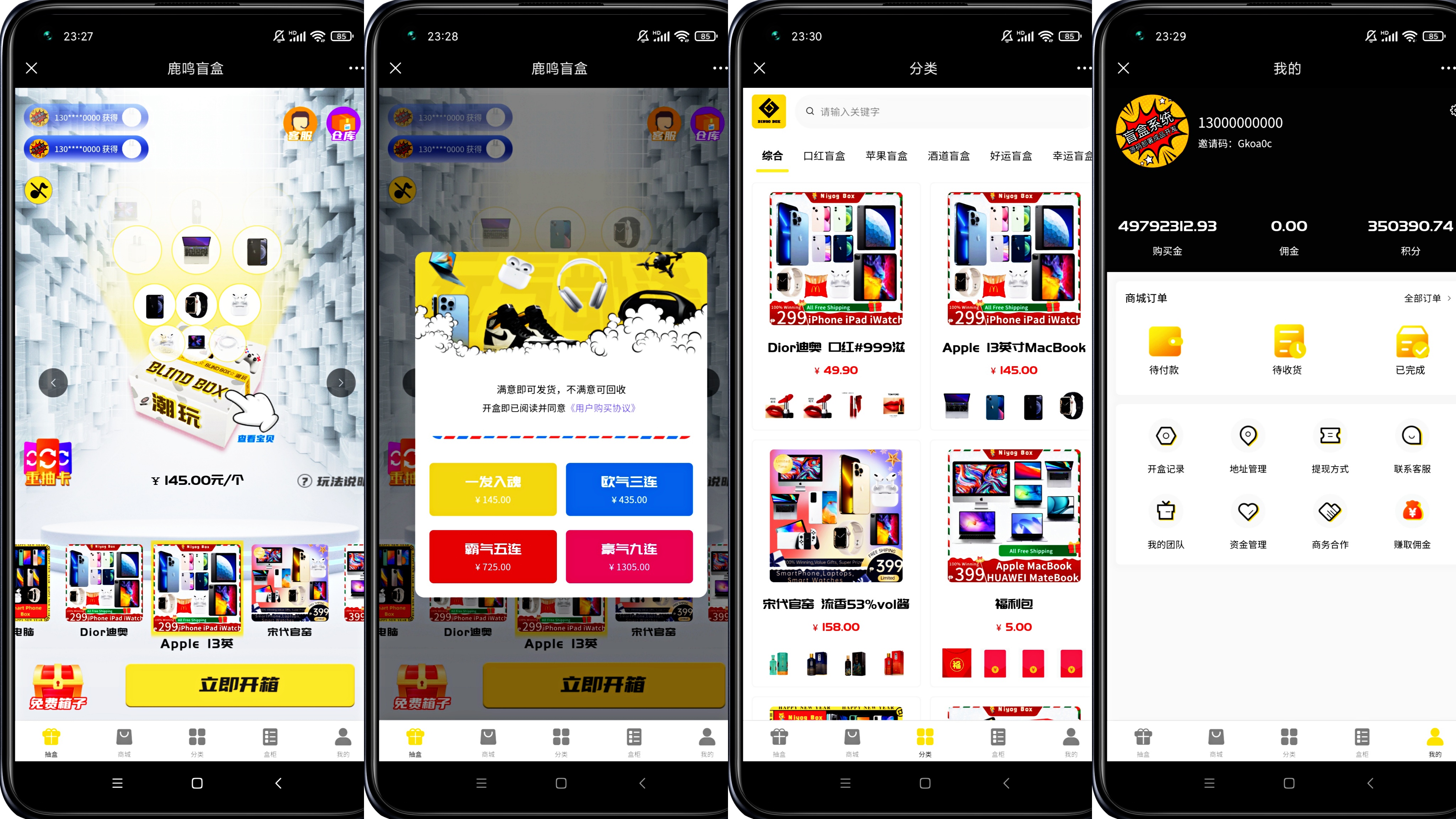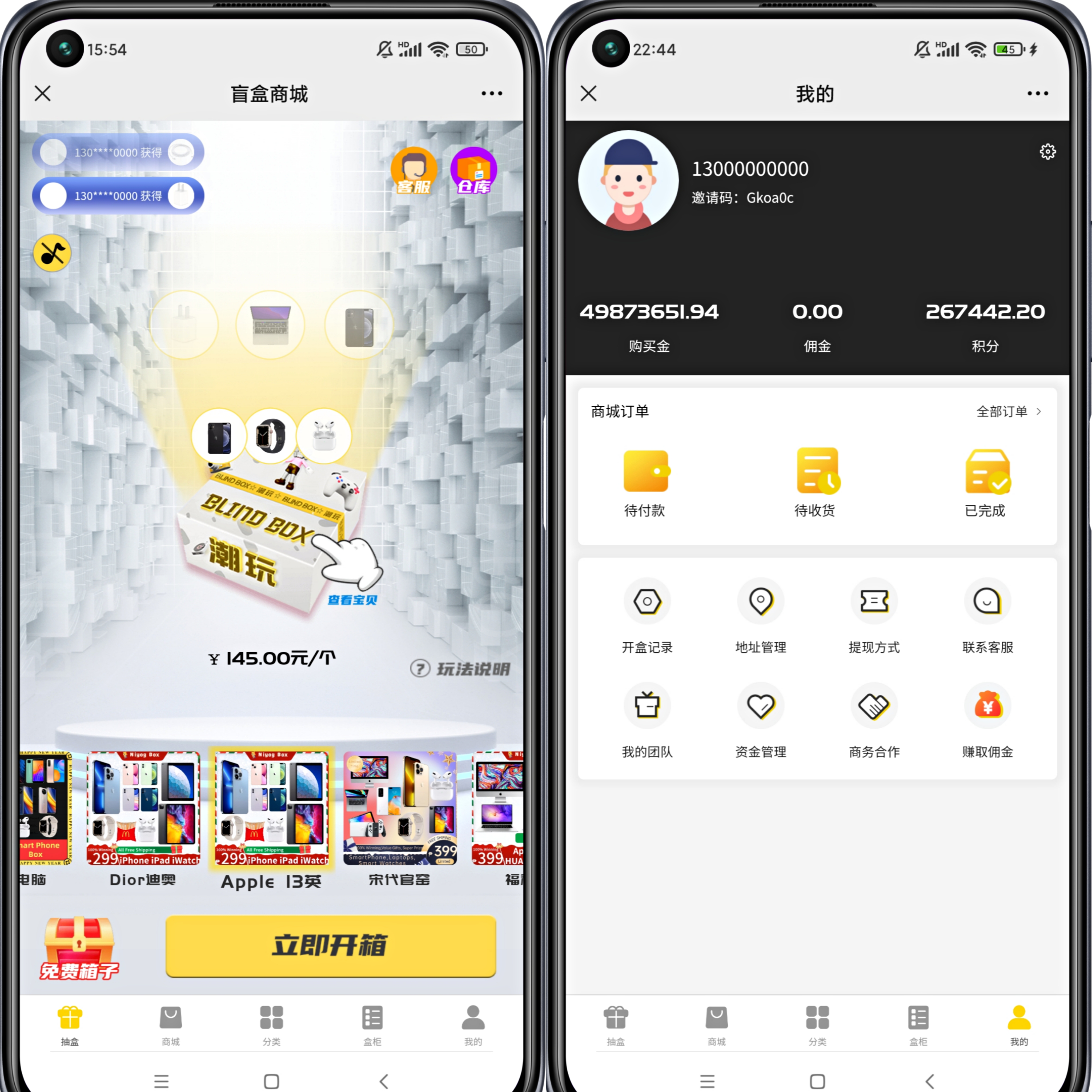 - 壹软盲盒V5,哈希盲盒商城源码,软著四端正版开源uniapp,H5,小程序V5升级款源码壹软盲盒V5