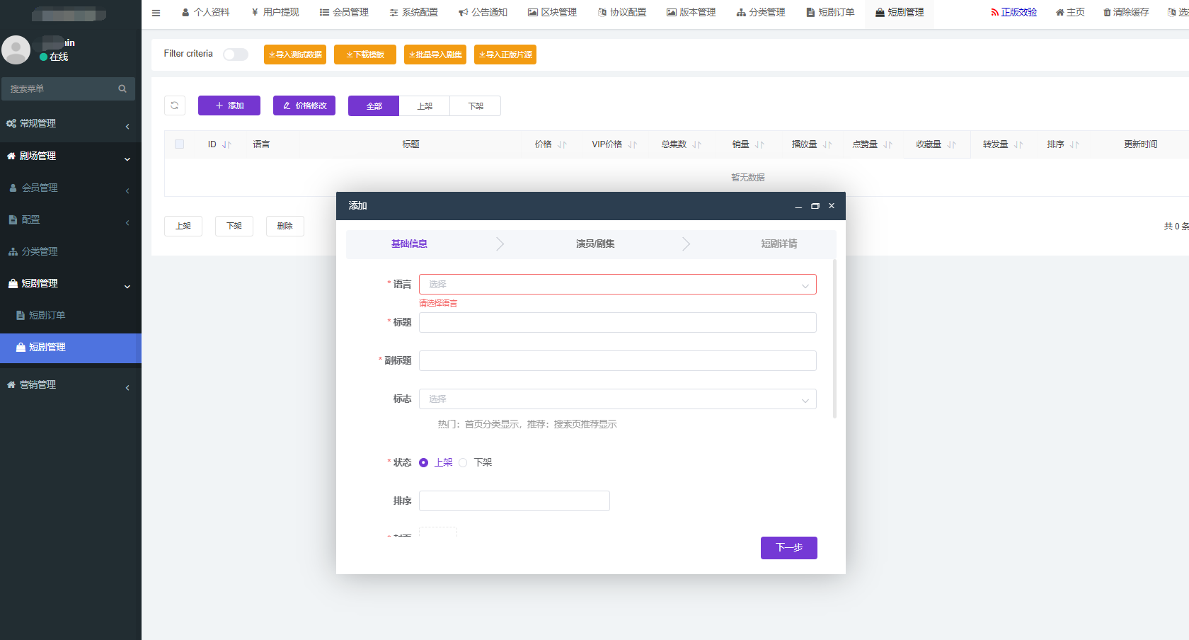 短剧系统是一款功能强大的海外短剧 SaaS 平台,包含H5、安卓APP、苹果APPP多种展示形式,支持PayPal支付、stripe支付,多语言选择,提供无限多开的开源系统。该系统提供了丰富的短剧资源,支持用户免费观看热门短剧、影视作品,同时也支持多种付费观看方式,如单人、全款和会员等,满足不同用户的需求。