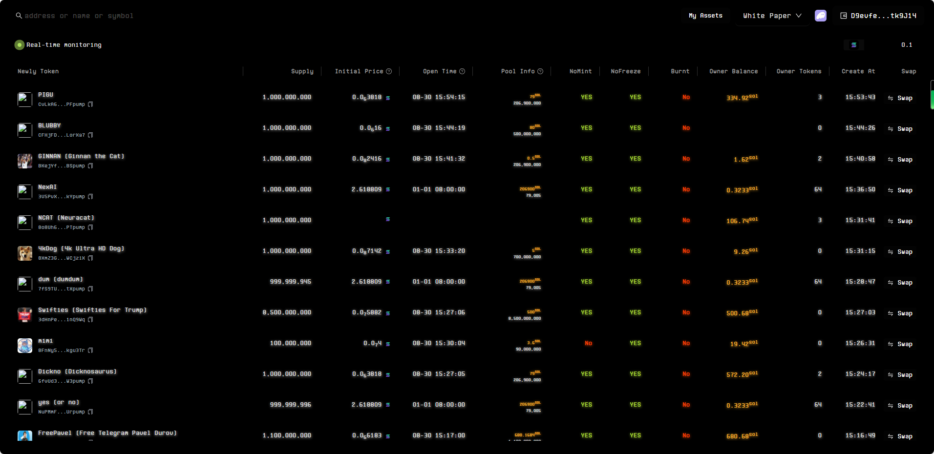 一套raydium打新狙击服务的代码,包括: 1、类似gmgn的一个网站 2、TG的机器人miniapp 3、实时监听最新的代币 4、使用钱包在网站进行购买代币操作 5、使用tg机器人进行托管式买卖交易 网站截图 TG的机器人miniapp截图 资源下载此资源下载价格为199人民币立即购买