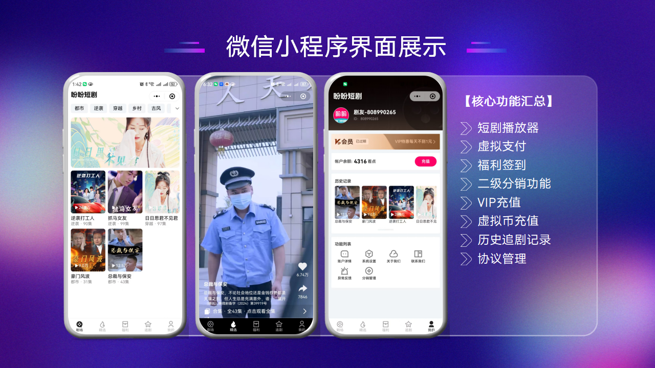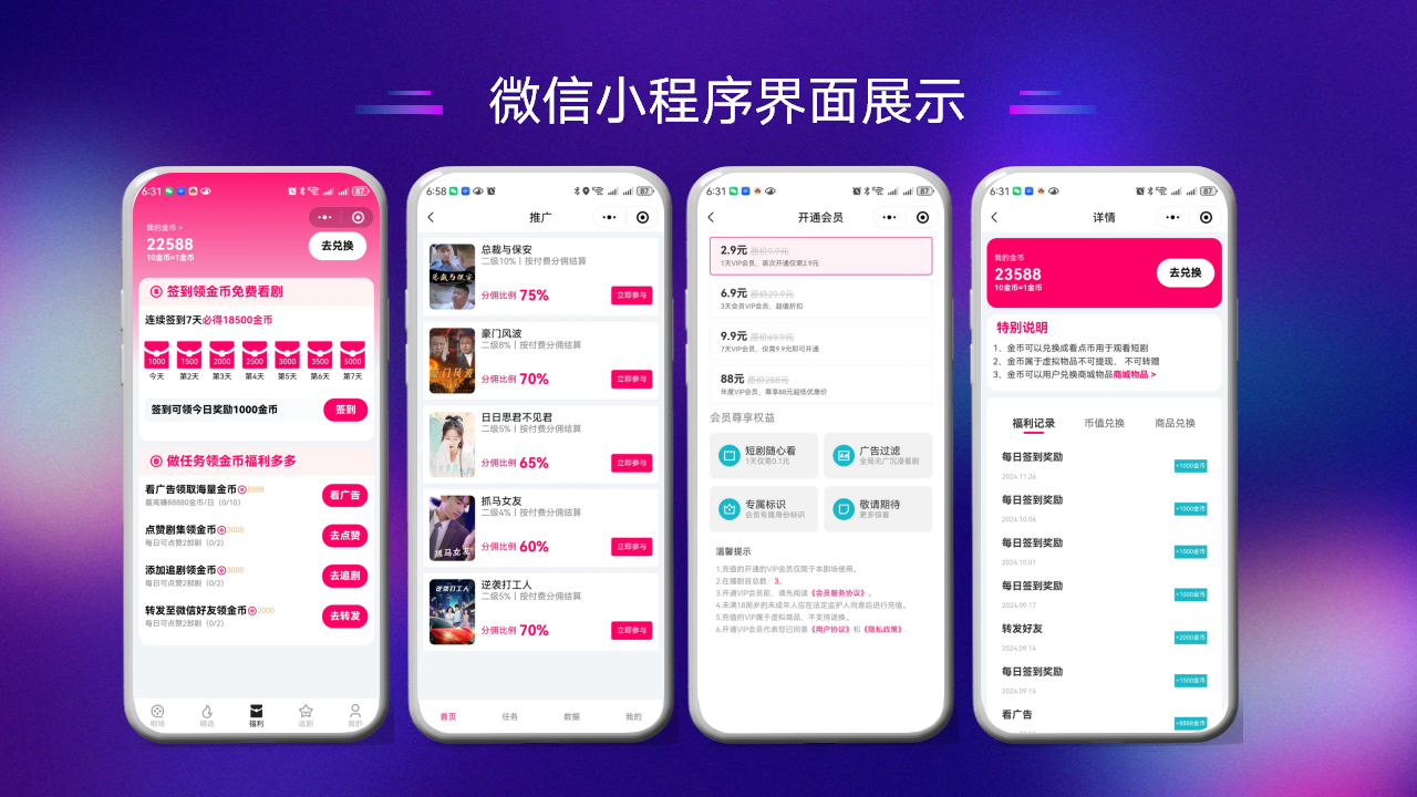 【短剧小程序H5】短剧微短剧抖微快小程序H5短剧源码全开源无加密源码交付多开SAAS版