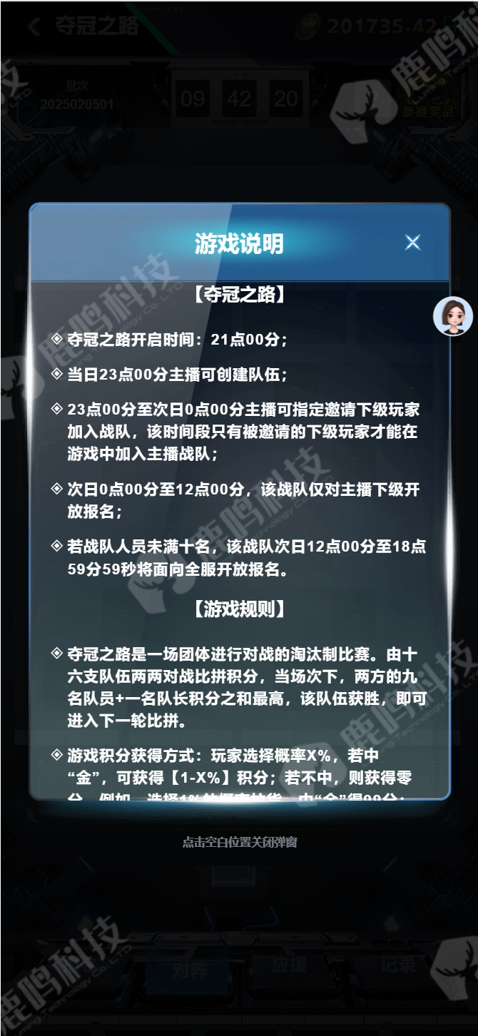 21点-22点主播邀请下级玩家加入战队,该时间段只有被邀请的下级玩家才能在游戏中加入主播战队(主播可对全员发起邀请,也可指定个别会员参与组队)