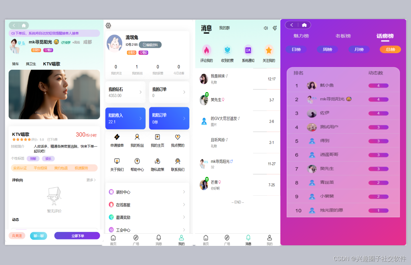 评价与反馈:用户可以对陪玩者的服务进行评价和反馈,提高服务质量和用户满意度。