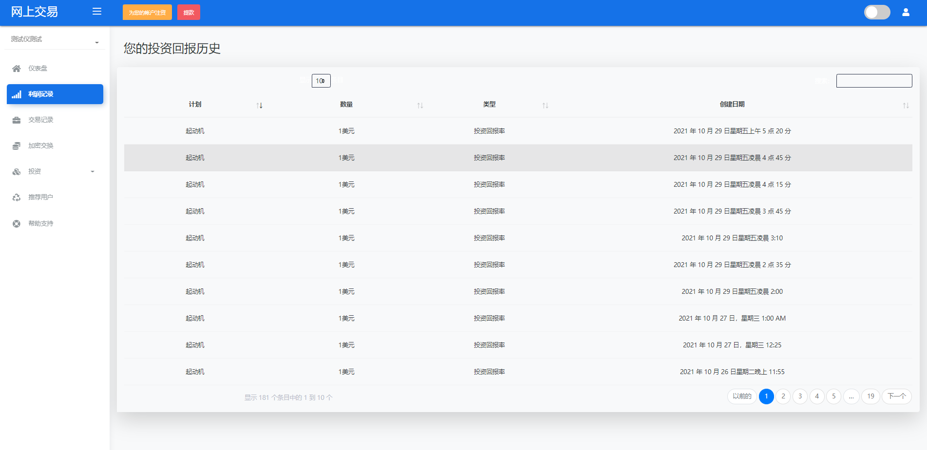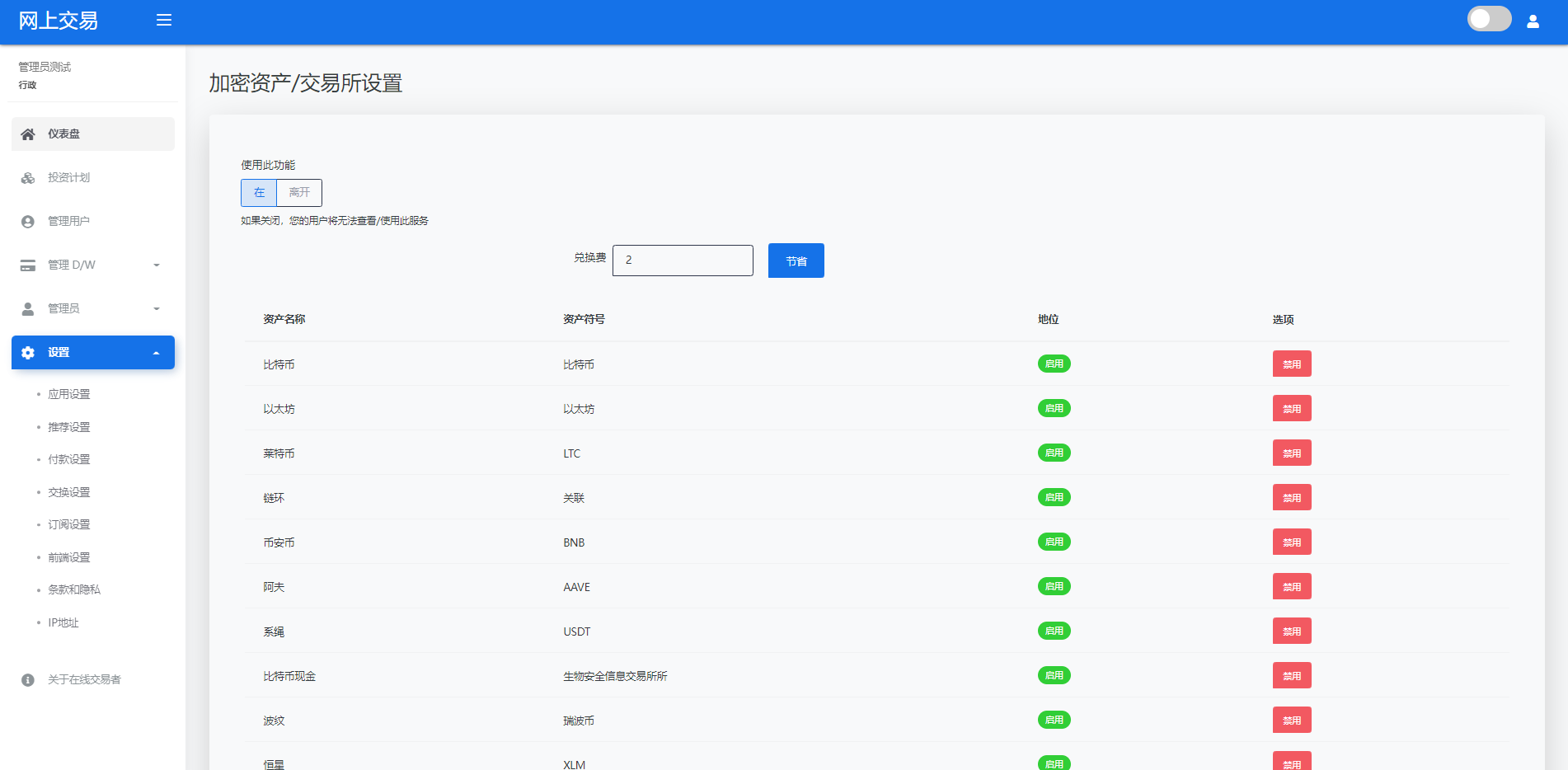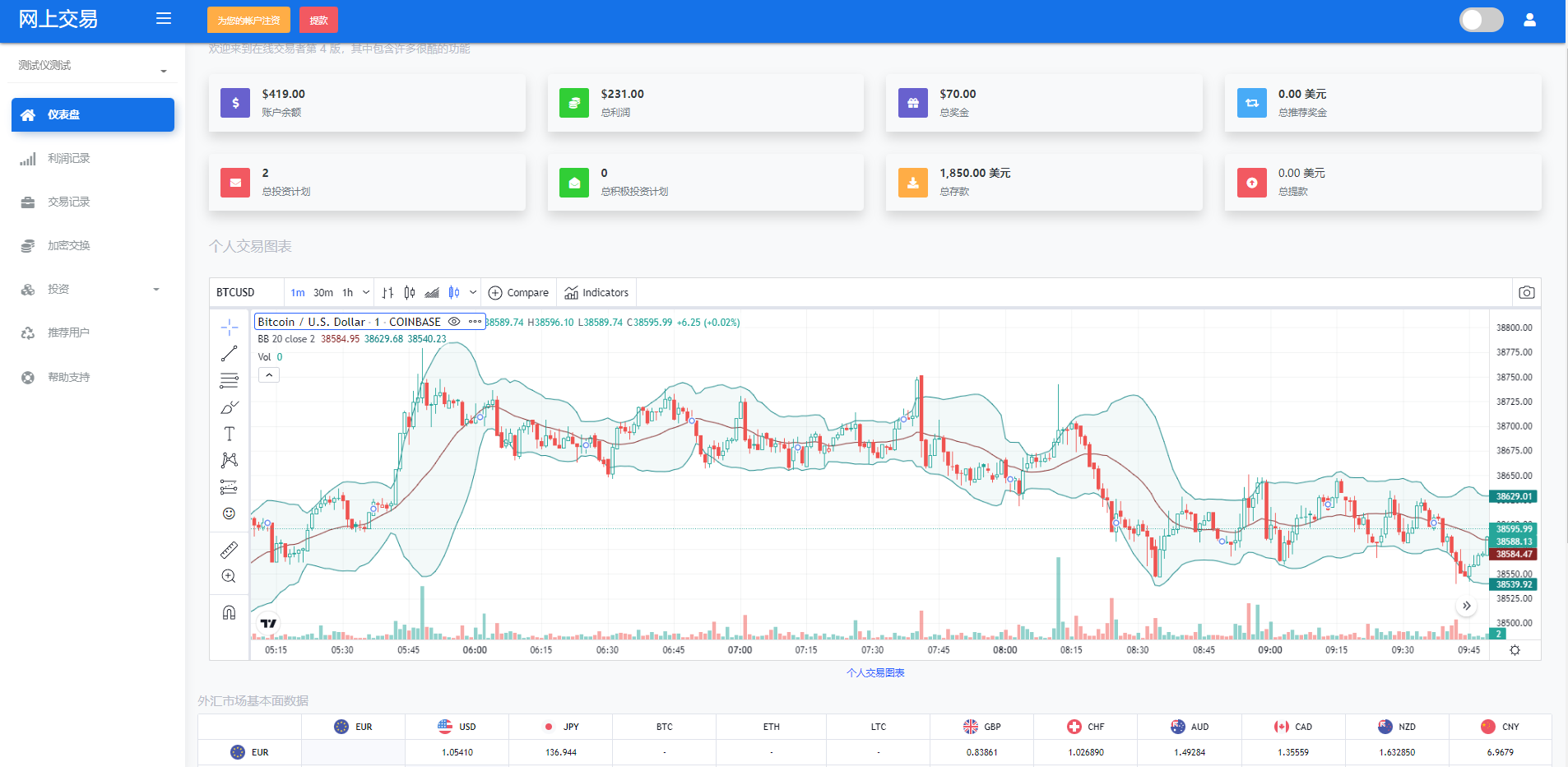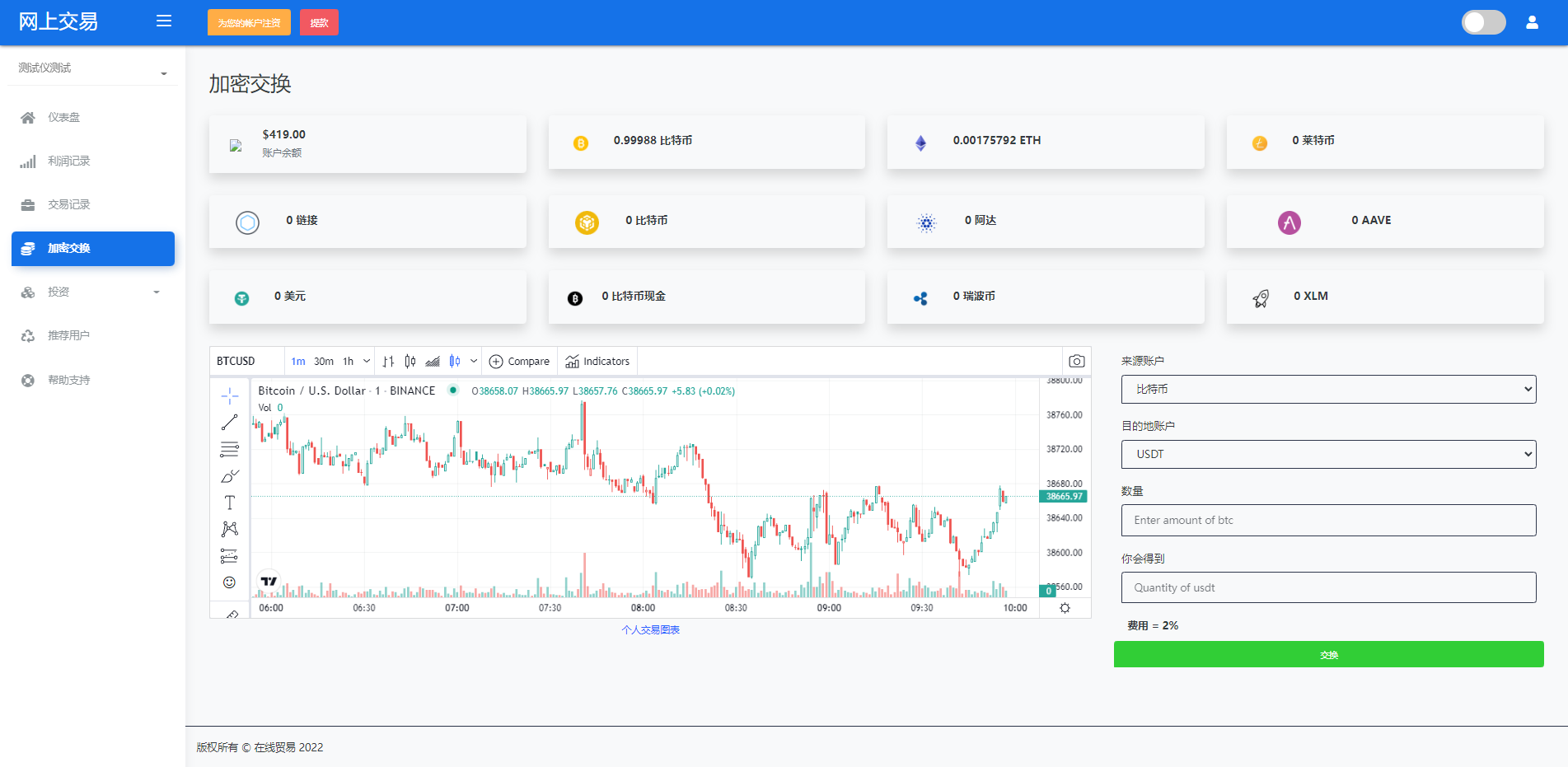 系统支持虚拟币交易实时交易附带行情实时跳动