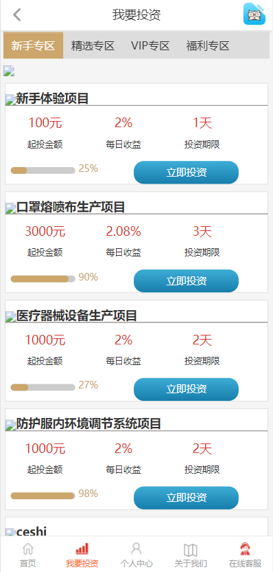 影视投资系统/投资理财/分红返利/自带客服系统