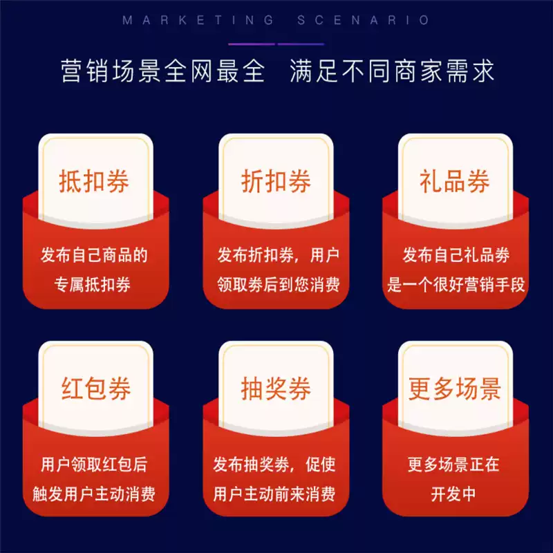 支持折扣劵、礼品劵、现金劵等重要营销场景。