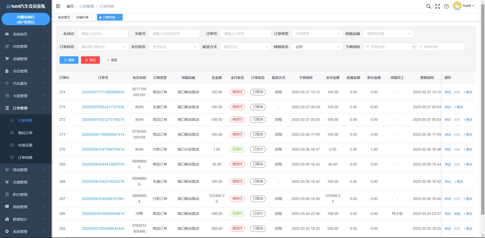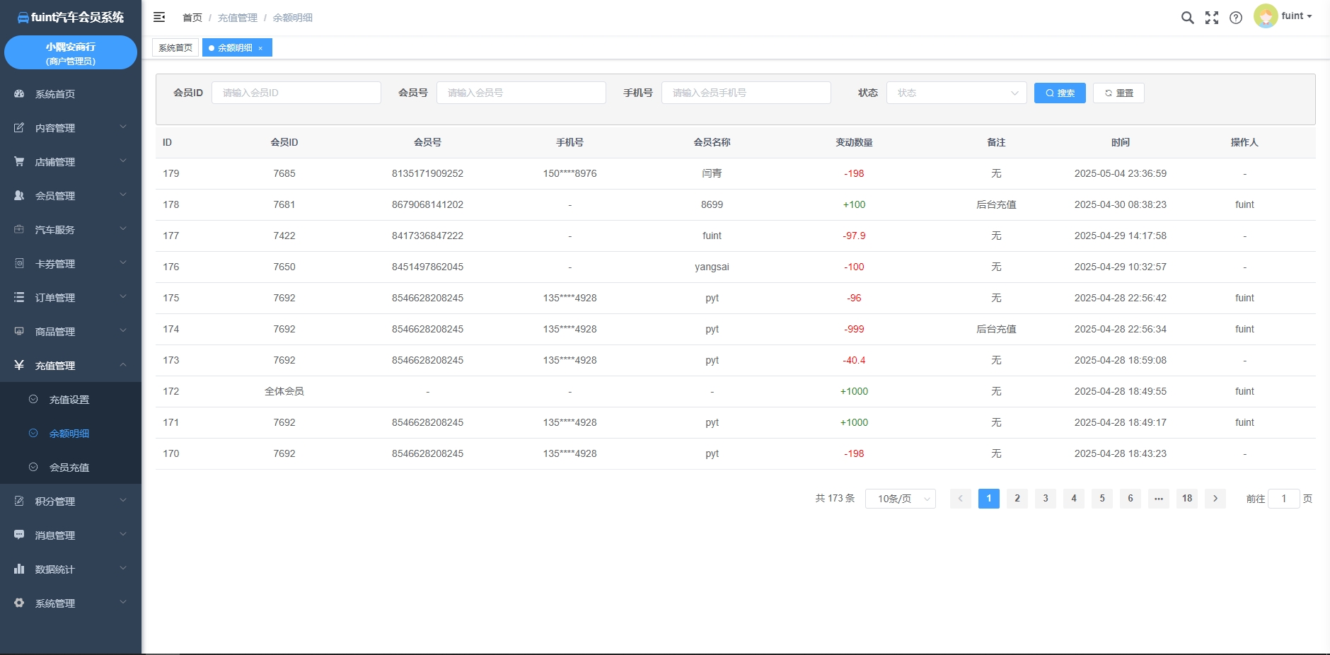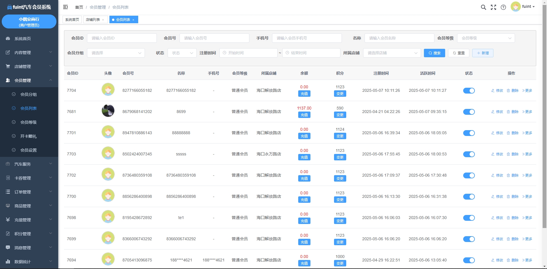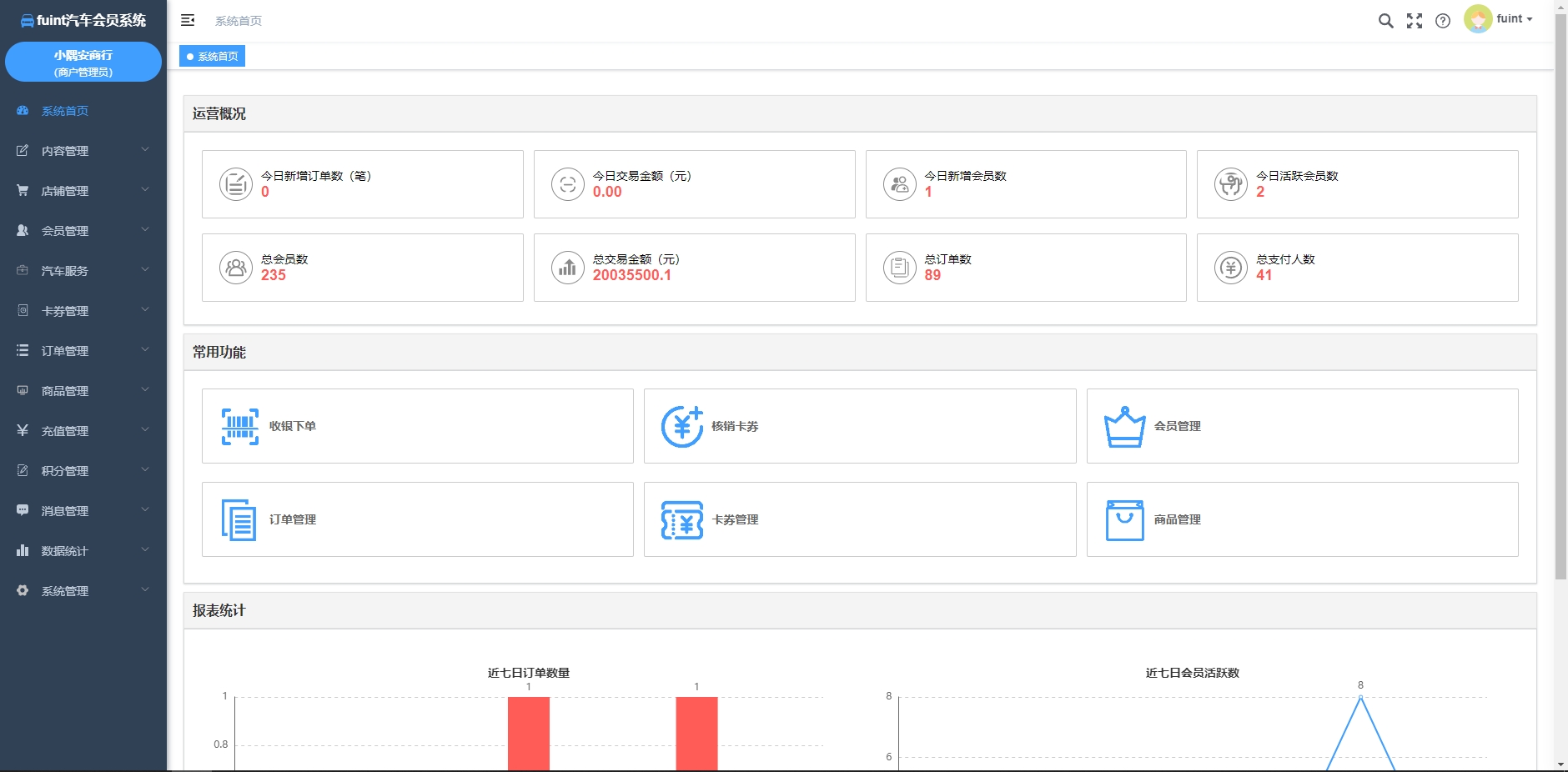 fuint会员营销系统是一款轻量级的会员系统,功能完善、系统安全稳定、简单易用、支持多门店接入,满足您多方位的会员营销活动需求。既适用于中小互联网企业也适用于线下实体门店。