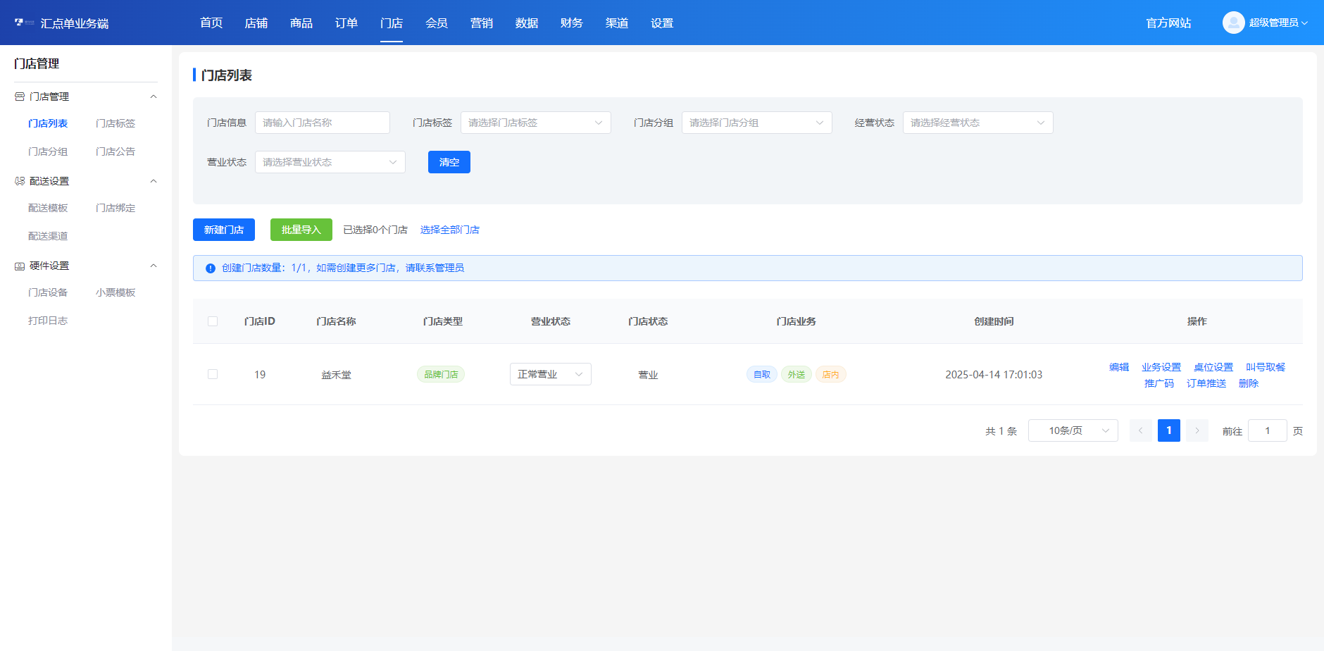 DIY装修、多门店、单门店、连锁加盟店、扫码点餐、拼桌点餐、多人点餐、服务费、打印机、商品导入、微信支付、服务商支付、代付功能、货到付款、会员等级、支付有礼、店铺满赠、订单语音提醒、商家配送、达达配送、点我达、顺丰同城、蜂鸟即配