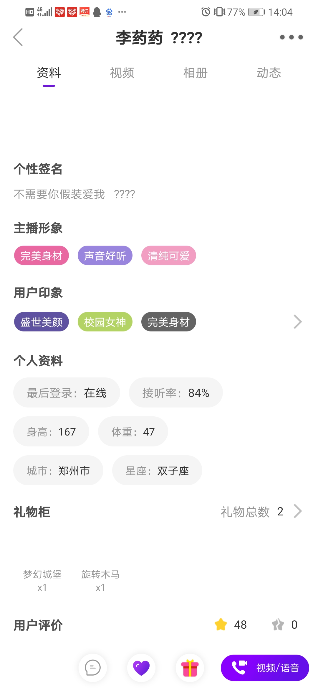 主播上传的个人图片及小视频,声音内容,以及主播基本资料内容;主播收到的礼物列表