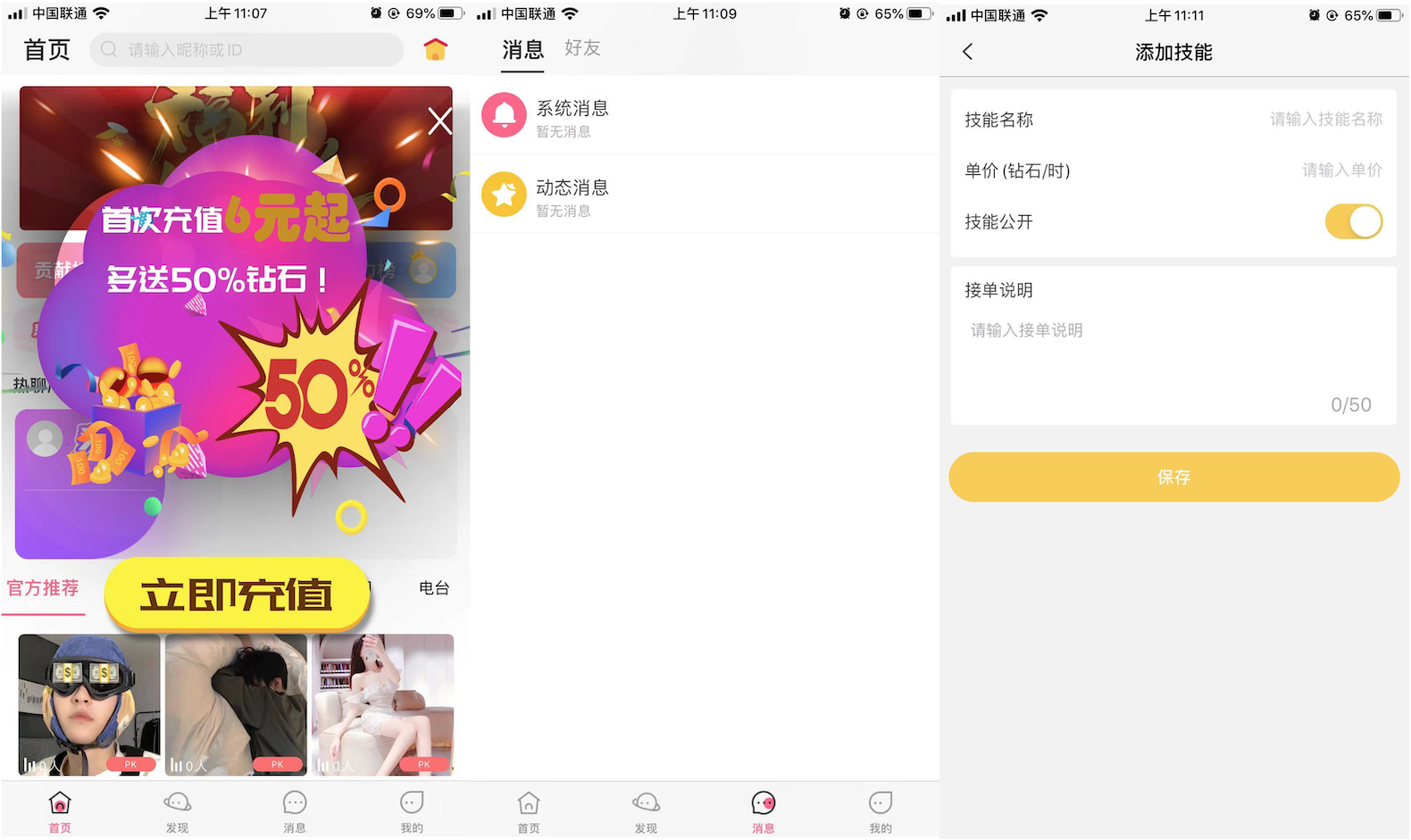 天、送礼物、私聊、电台、附近的人、个人动态主页等功能,通过语音来结交朋友,非常的有意思,可以和来自五湖四海的朋友尽情聊天,找到你心目中的那个ta。社交软件易于推广,因其趣味性深受广大用户喜爱,增加用户粘度,APP也易实现的盈利!