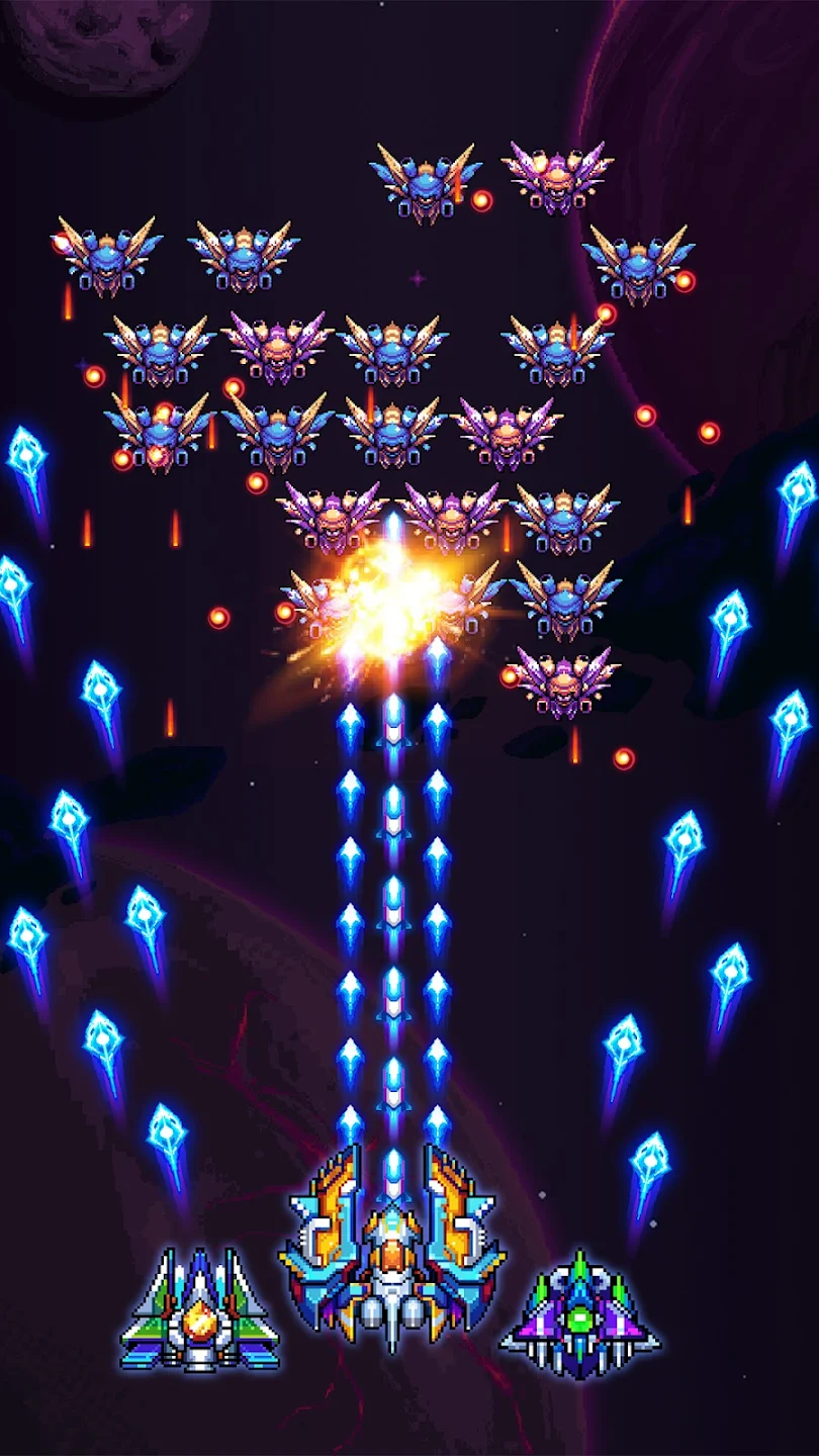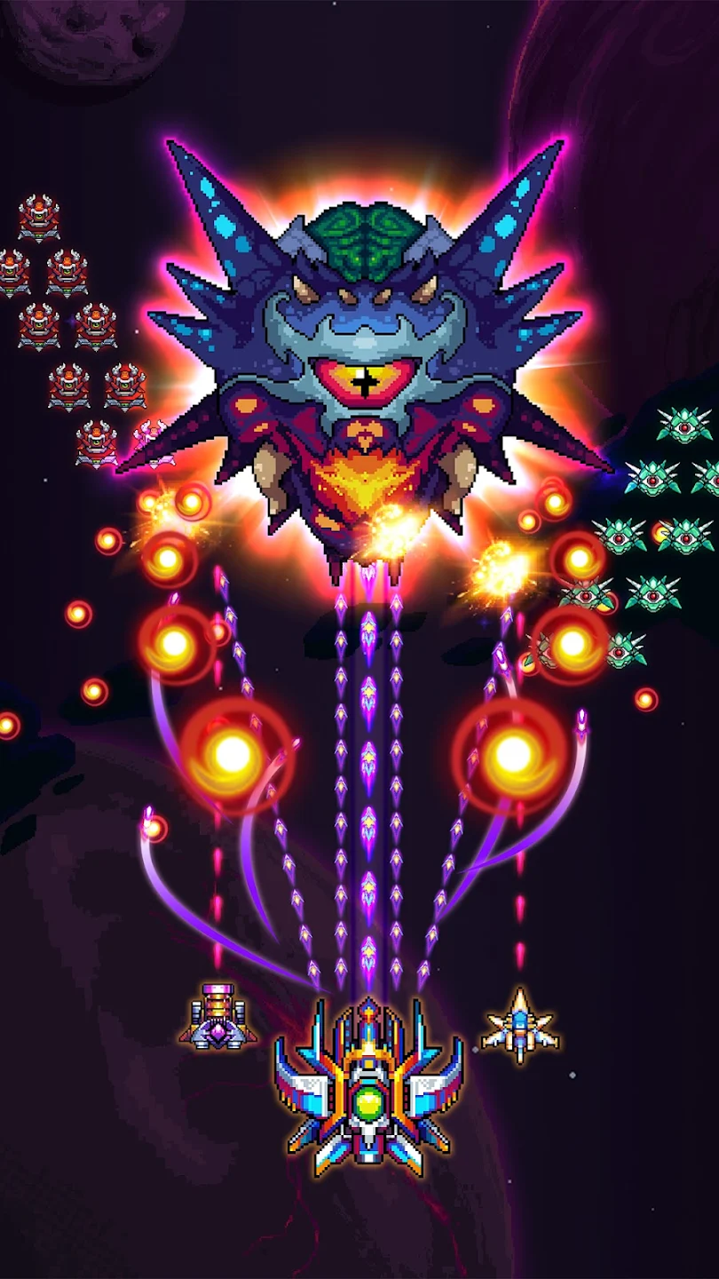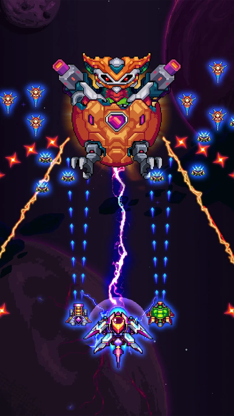 Galaxiga:80年代经典街机射击游戏-免费游戏是让您想要玩经典游戏的最佳太空射击游戏。如果您是Galaxia,Galaxian和Galactica等街机射击游戏的忠实拥护者,并且希望在新的现代战斗中带来自由,那么Galaxiga:80年代经典街机射击游戏-免费游戏将是您的理想选择。