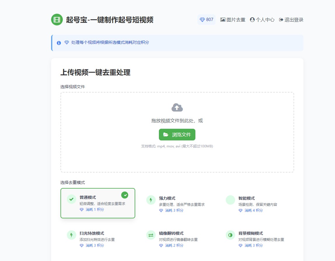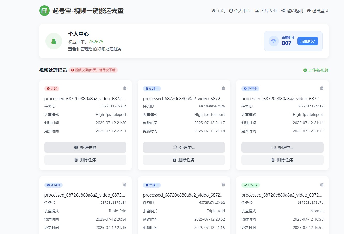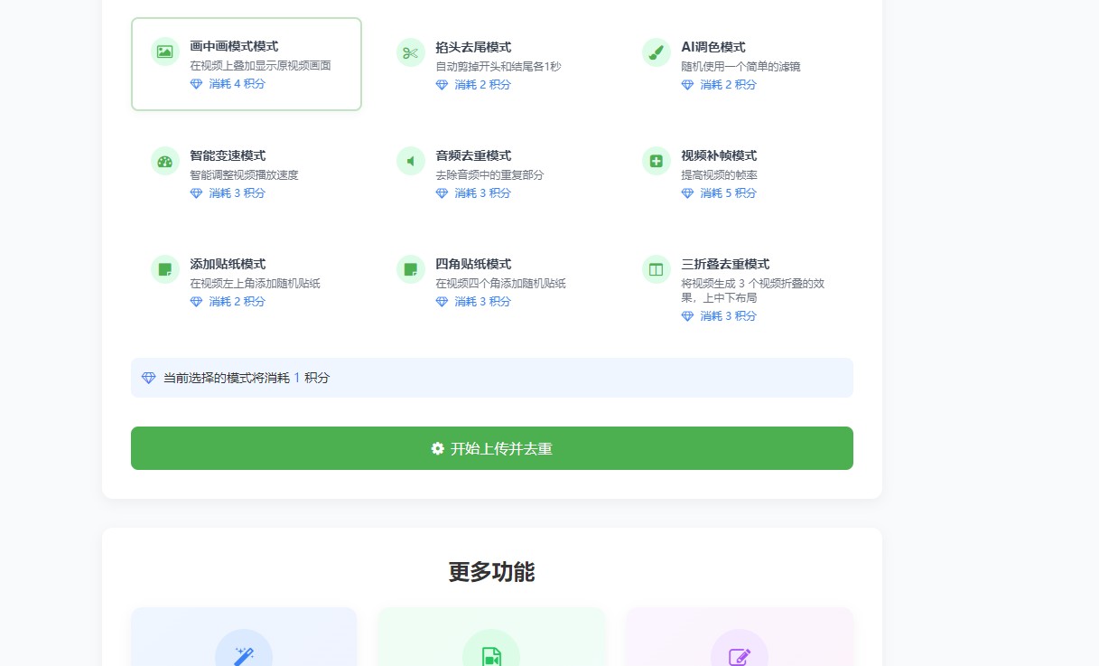 在线视频去重网站,采用ffmpeg一键去重,,,系统采用队列技术,不会因为同时处理视频而崩溃,小服务器也可以带的动,支付的话我们对接的是易支付,非常方便