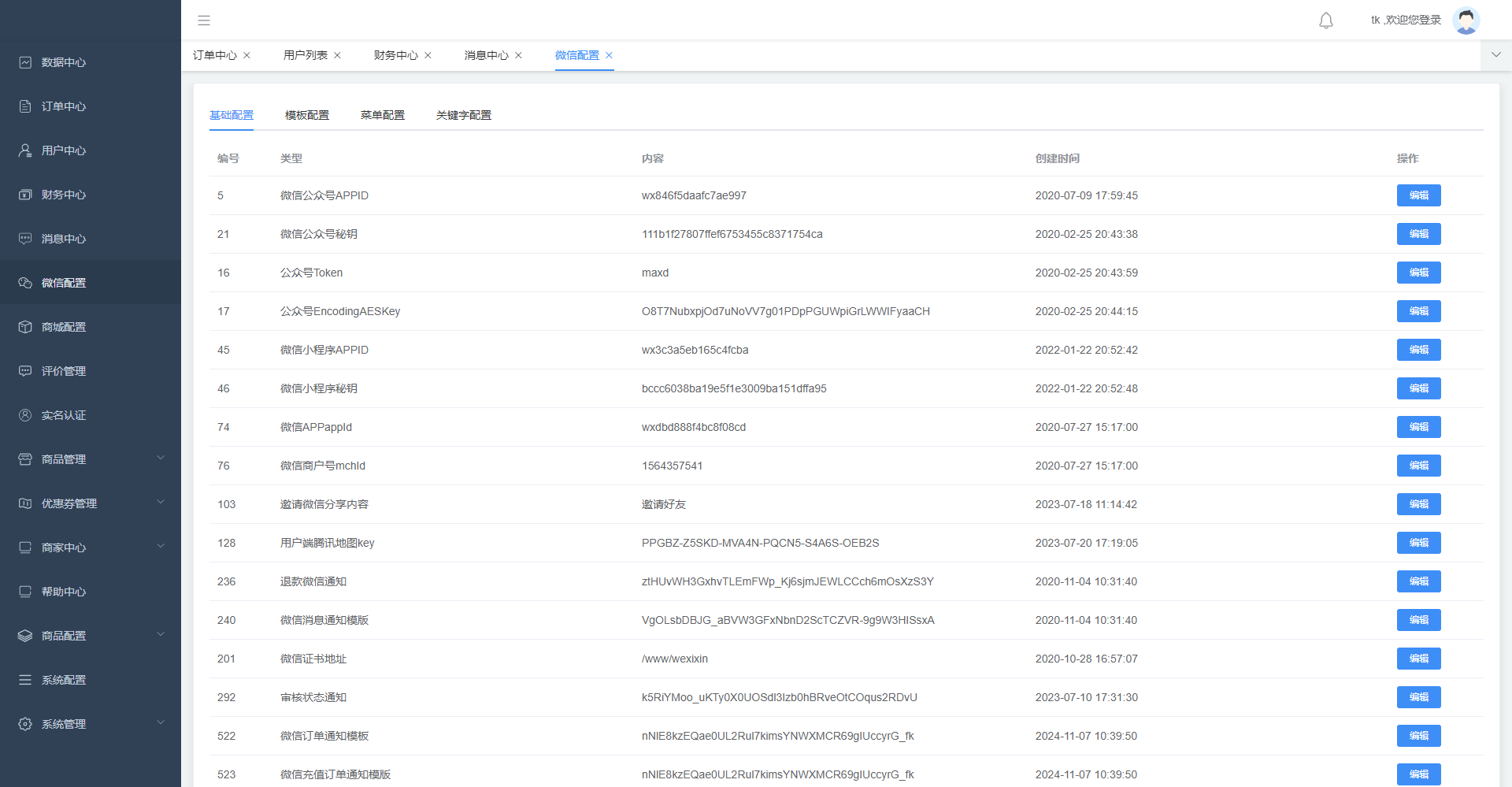 丰富的营销玩法,强大的分销能力,支持DIY多模板,前后端分离。性价比高,适合运营和二开使用。支付配置、存储设置、交易设置、消息