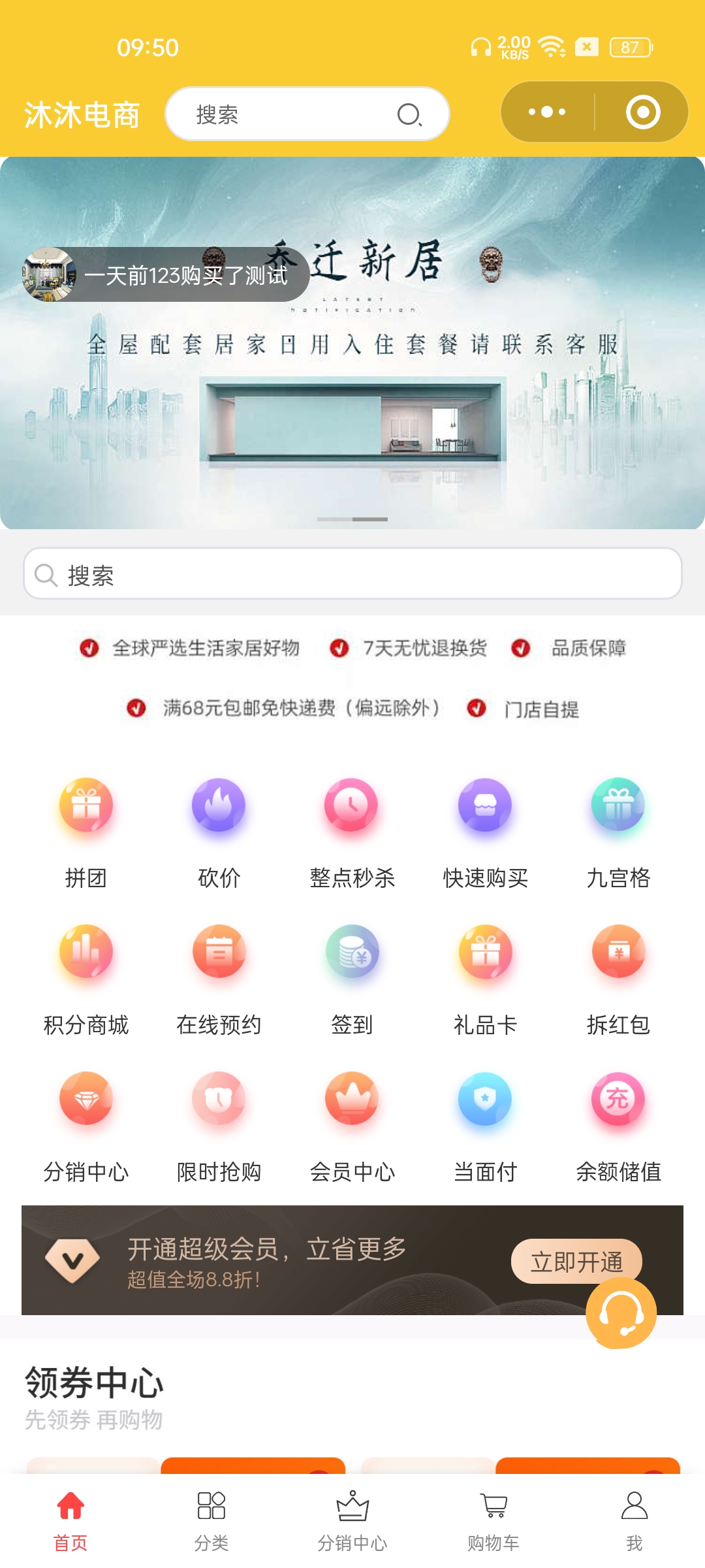 5.支持会员积分,积分可以抵扣购物金额。