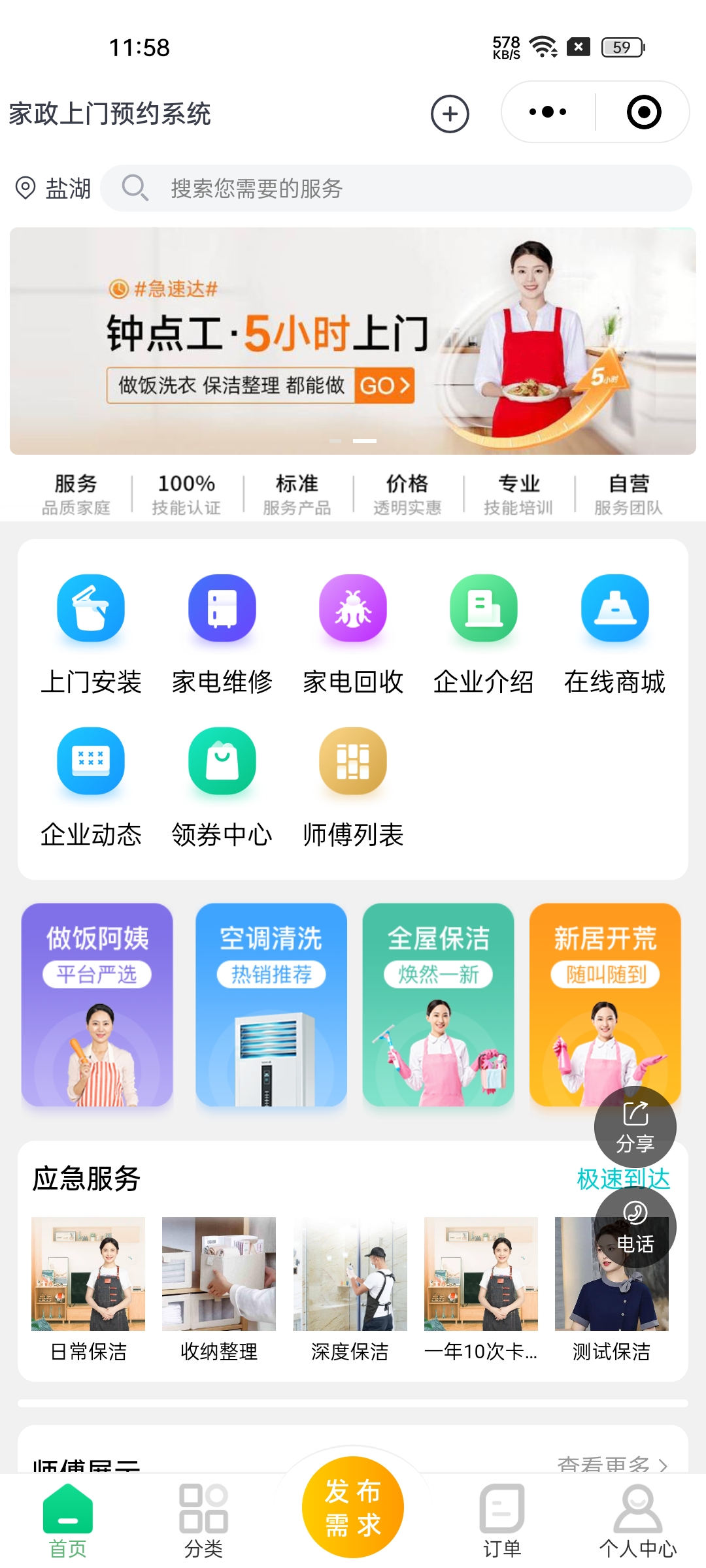 服务管理、商品管理、订单管理、会员管理、师傅入驻