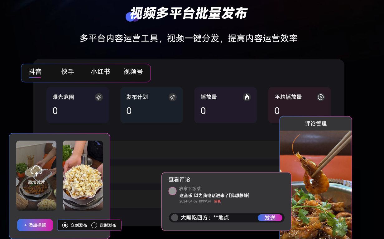 利用免费工具(如剪映、新媒加)实现批量剪辑和多平台发布,并通过数据分析调整发布时间和内容类型。