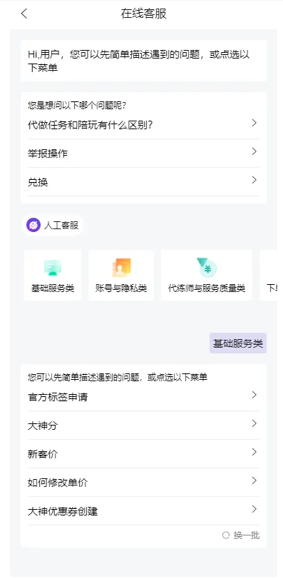 客服可以直接报单内容和价格,同样会直接生成订单,打手可以抢单,也可以指派。和普通订单一样流程