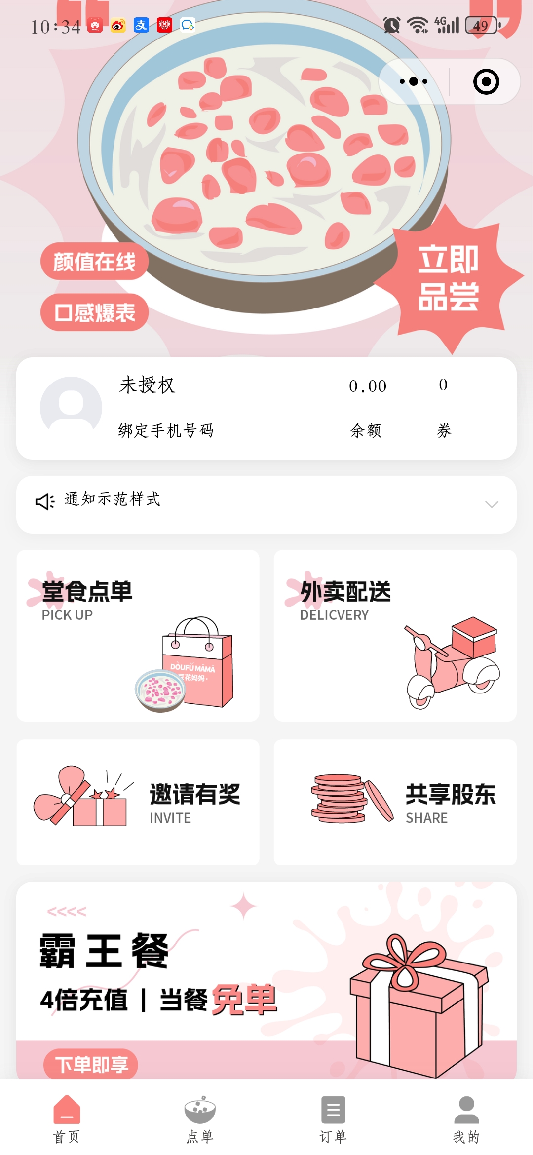 3.点单模式:支持堂食,外卖,打包自取。