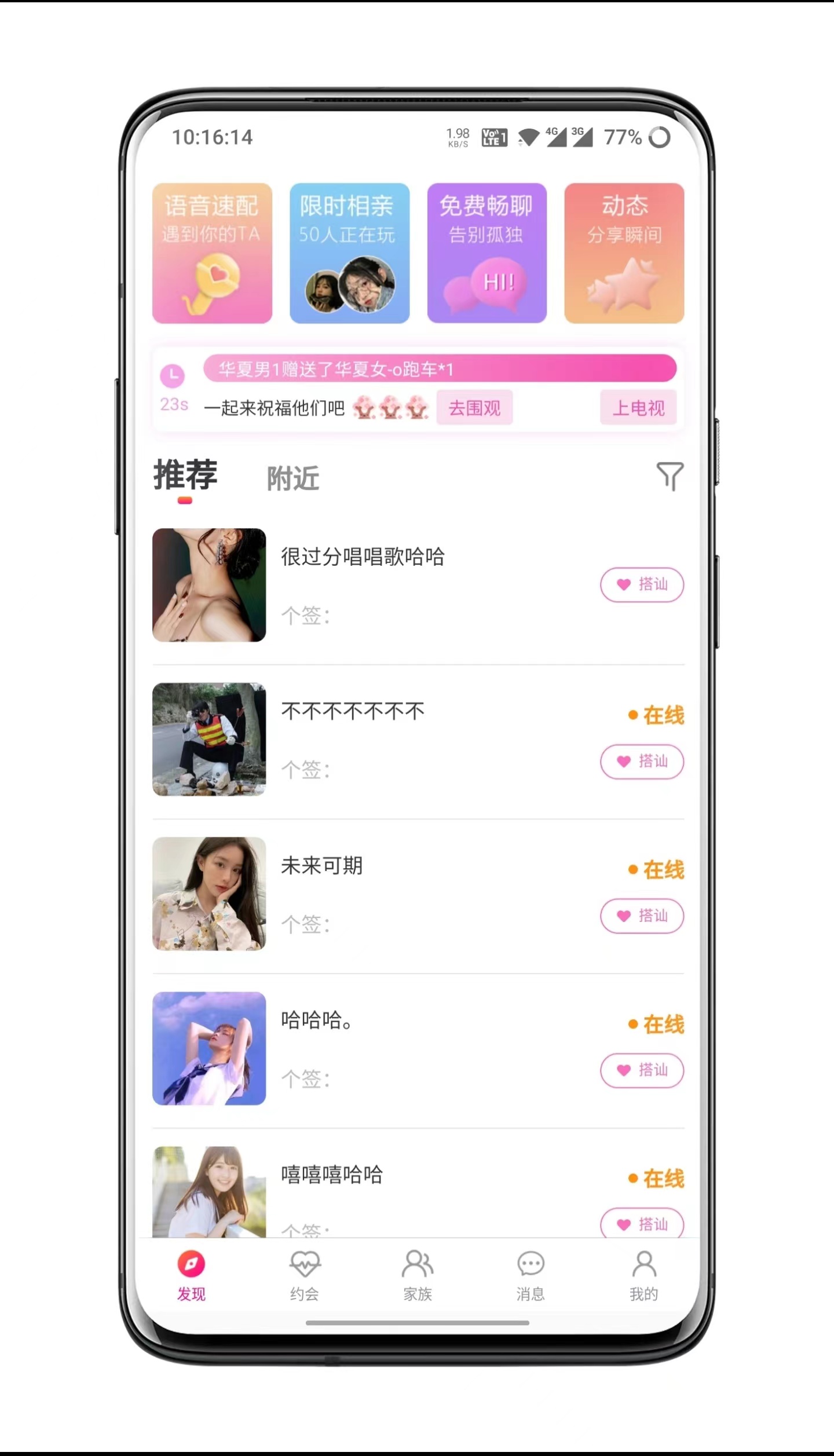 2、限时相亲:开启匹配,同意时间内开启匹配的用户即可随配约聊才成功,结束后自动根据交流时长进行价格结算