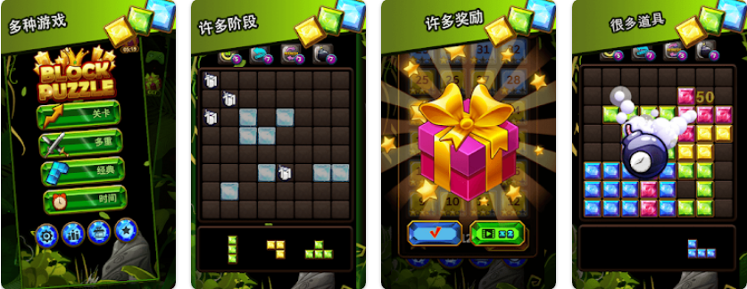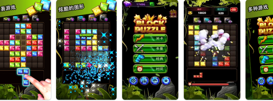 把块放在板上。 一旦你填写了一个垂直或水平线,它将消失,释放新的块的空间。