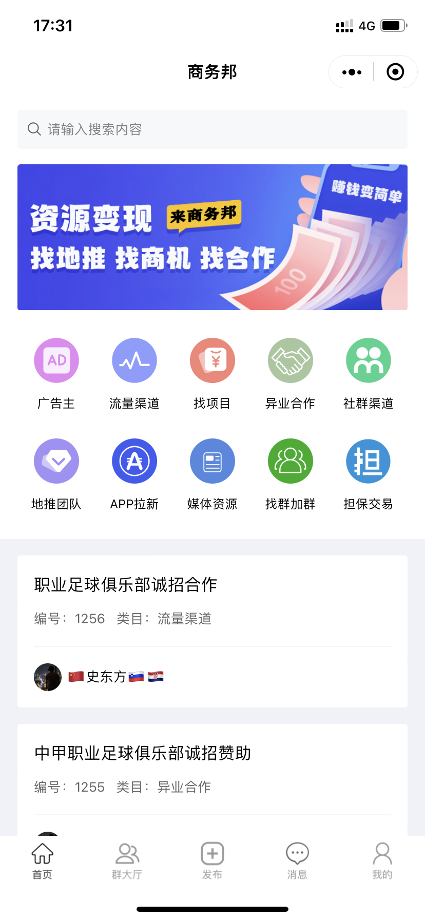 系统可运作 异业合作 APP推广 APP拉新 CPA CPU BD商务 获客 人脉资源 群资源 接单放单 任务发布 商务合作 商务推广 等类型的平台。