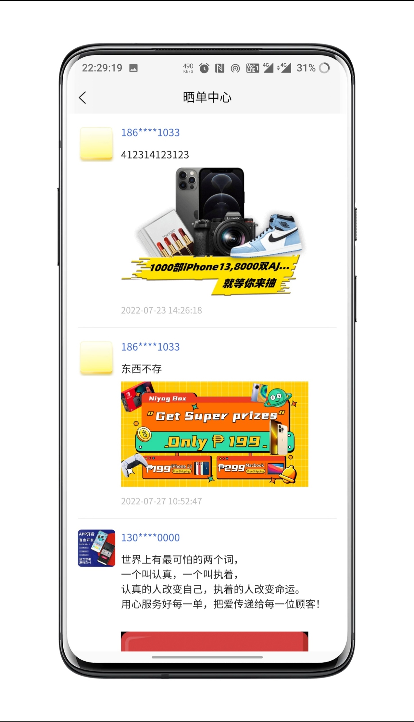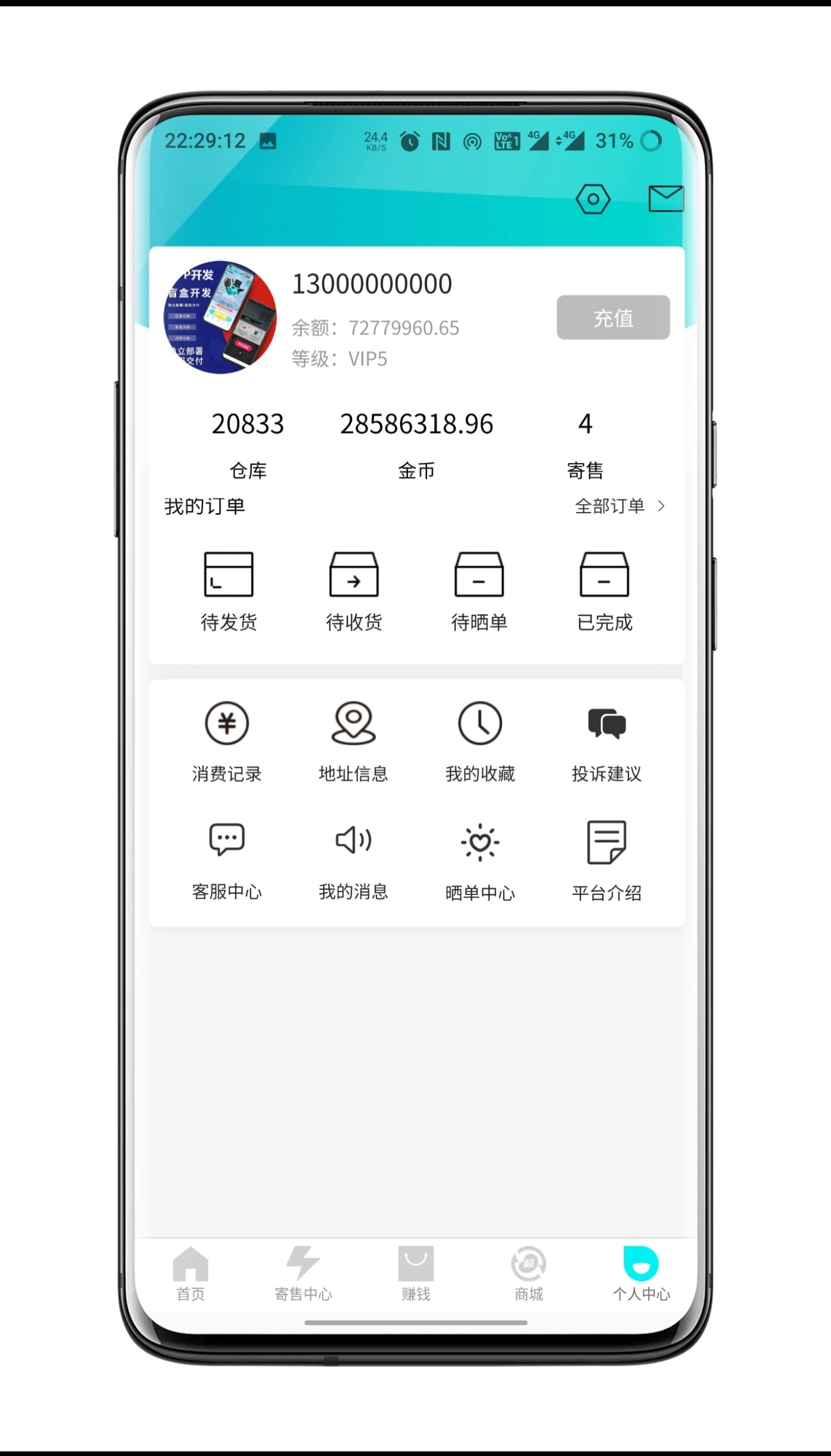 我的个人中心,等级显示、系统消息、活动消息、头像昵称自定义、我的商品收藏、晒单中心、我的订单、消费记录、客服中心、地址信息、平台介绍、投诉建议,可上传图片并提交自己的投诉或者建议。