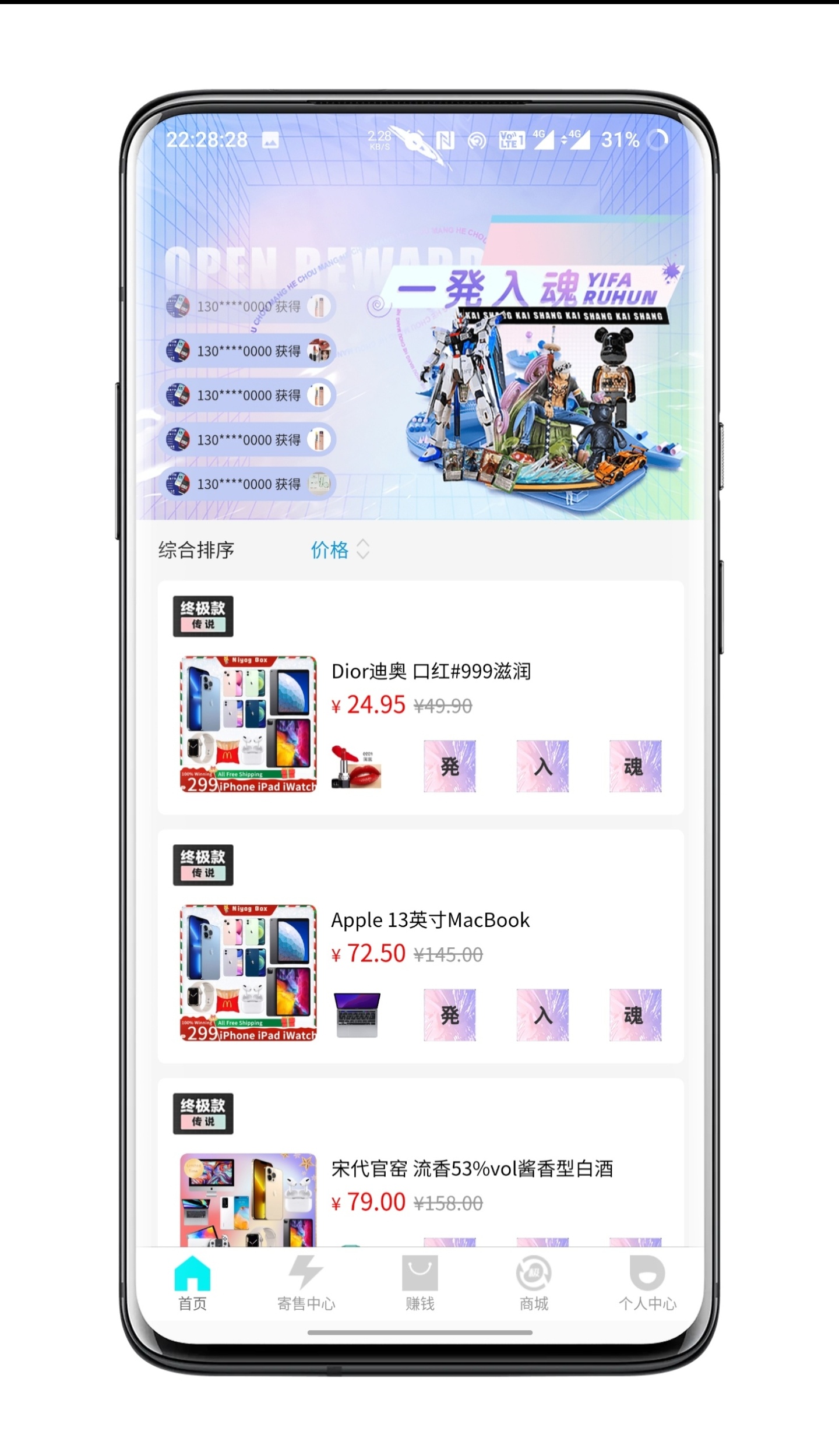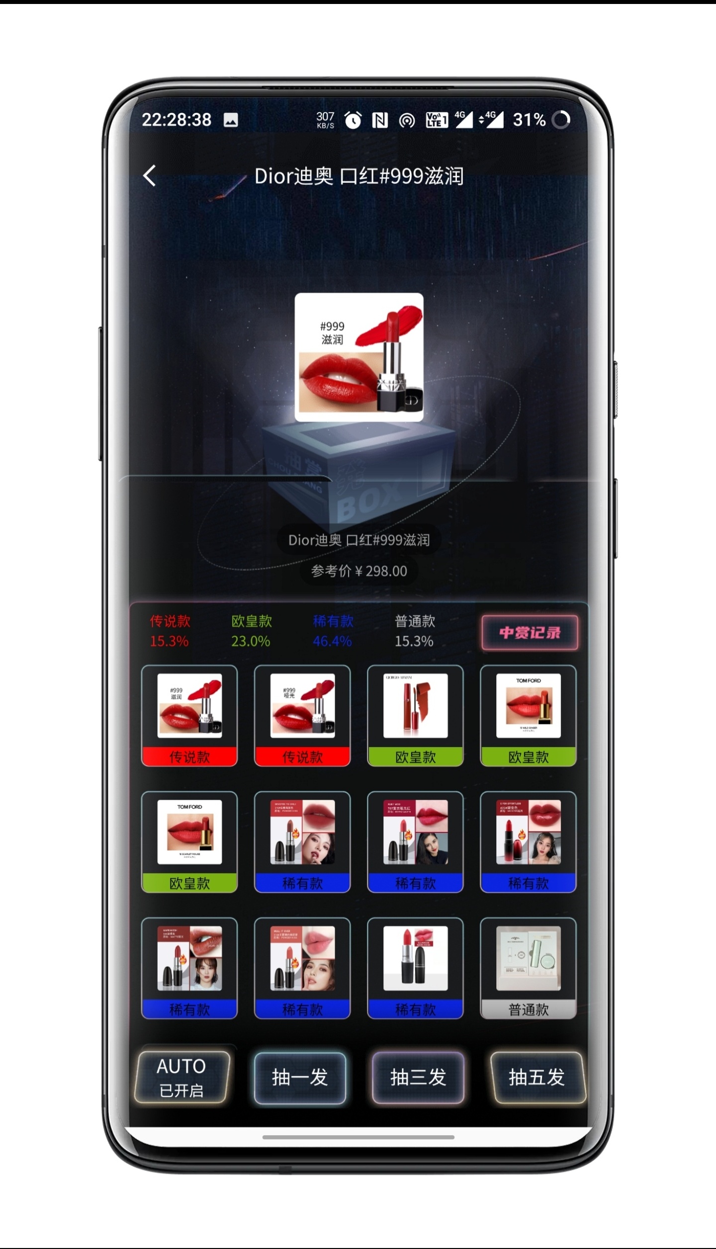 首页中奖轮播图,一番赏首页反转图、真箱炫酷开盒动画特效、中赏记录、自动抽赏设置、自动单抽、三连、五连,自动兑换普通款、稀有款、欧皇款、传说款;
