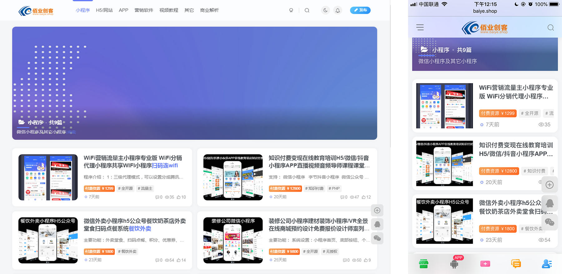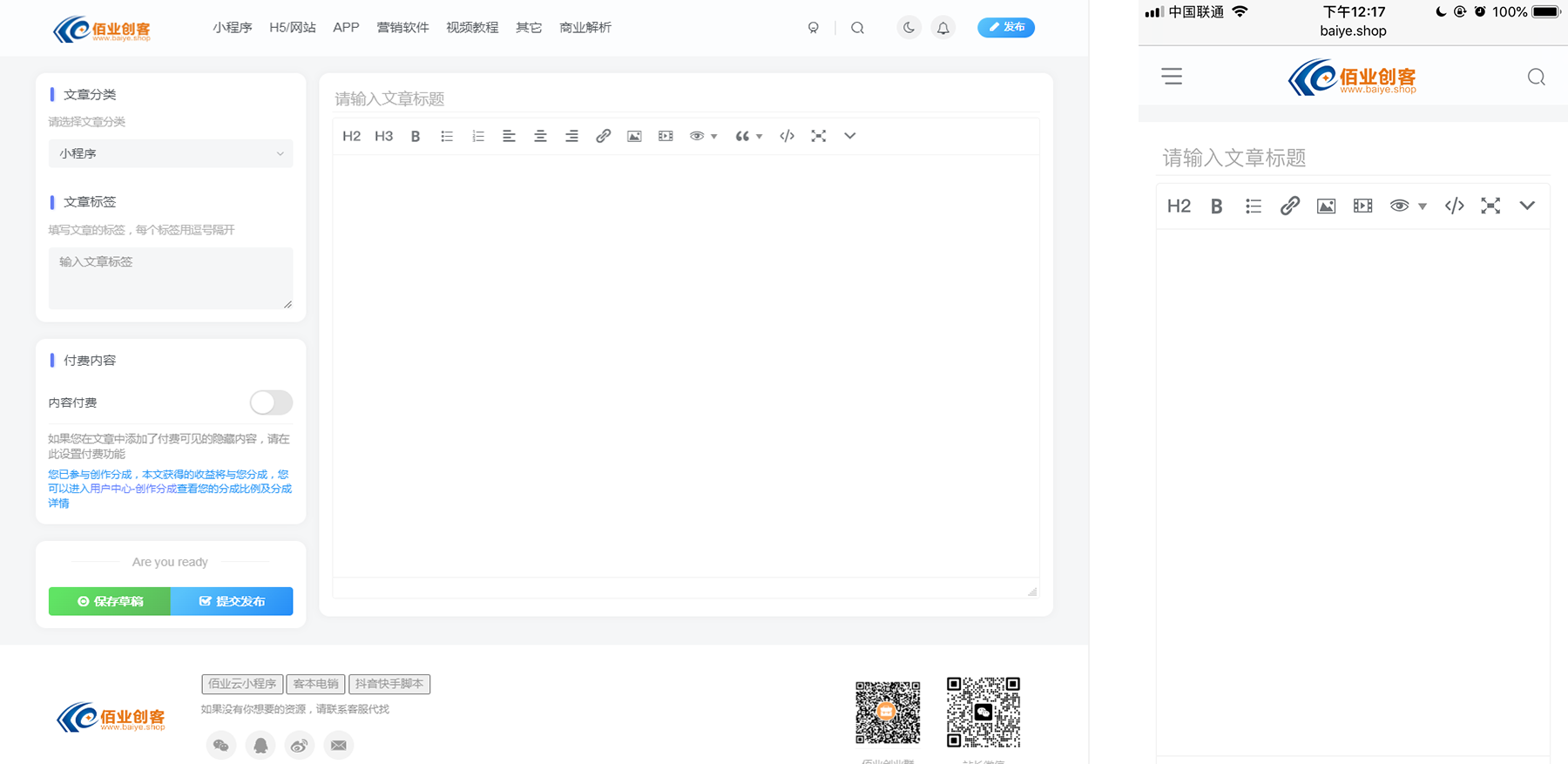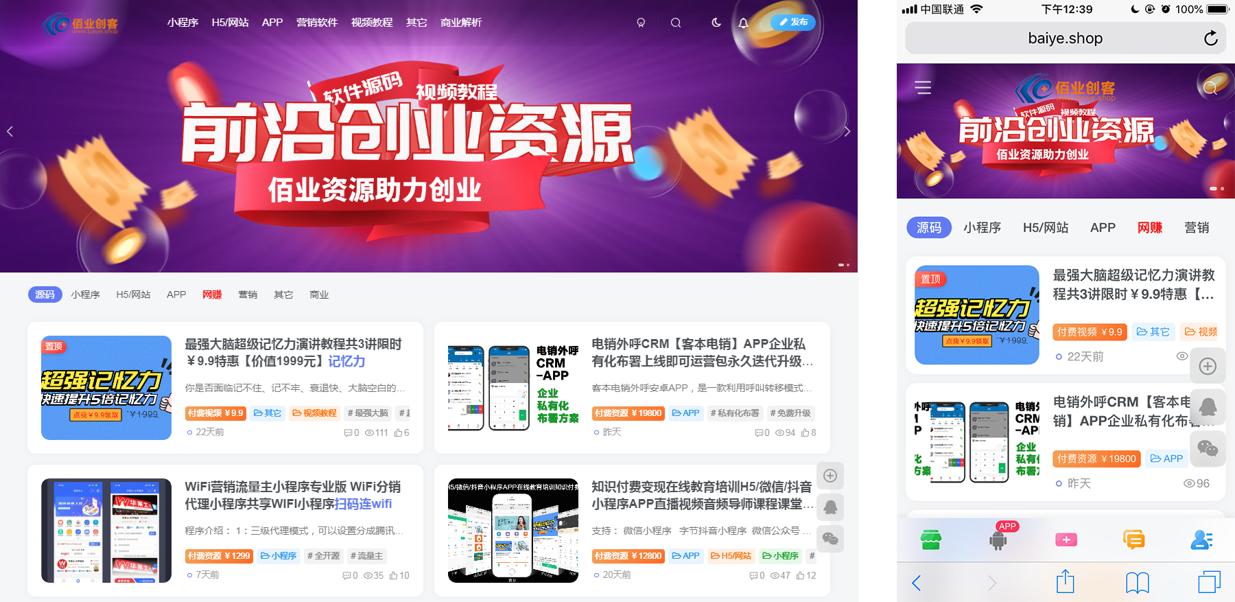 演示:https://www.baiye.shop,或查看公众号:佰业网络