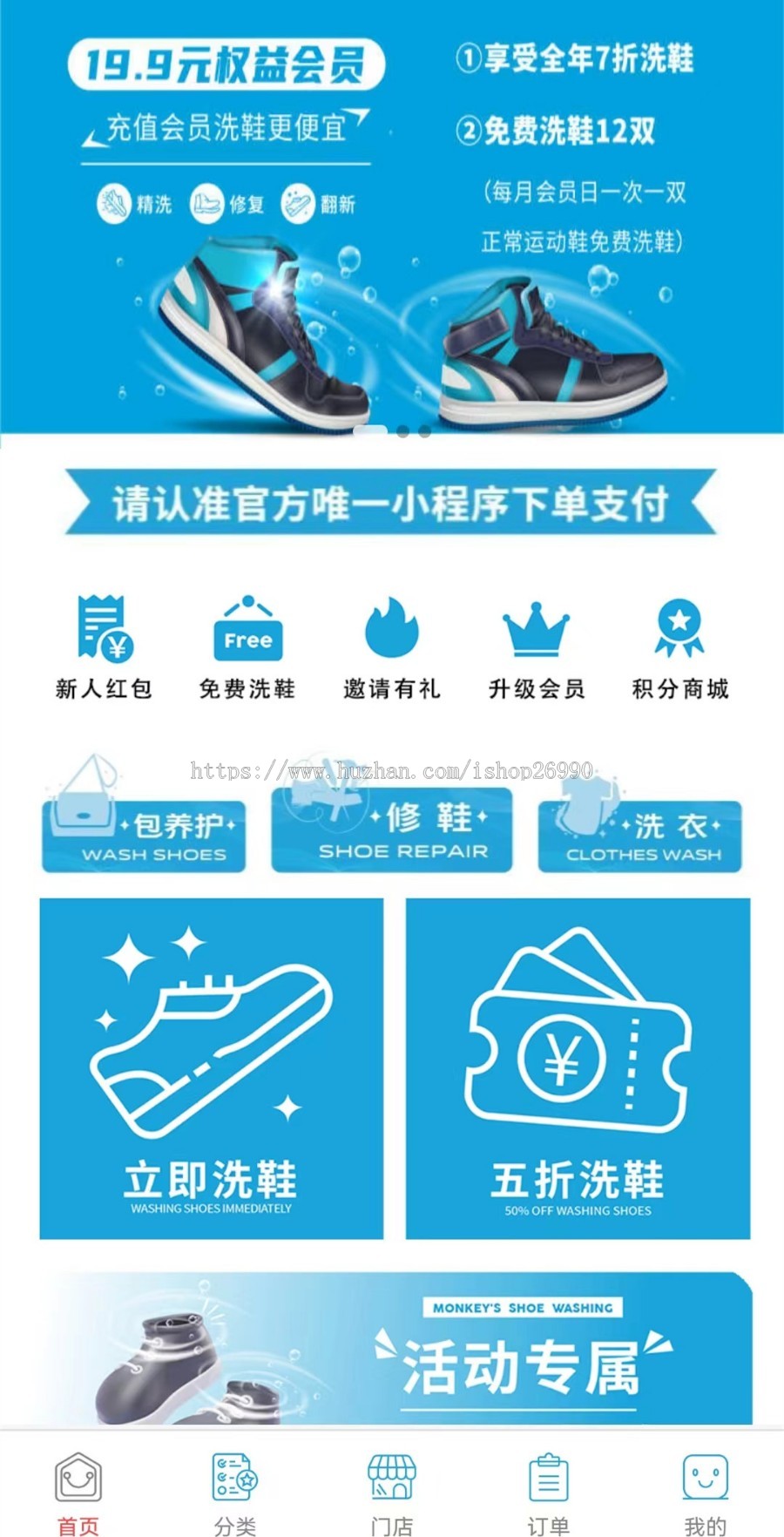 多门店预约到店洗鞋洗衣优惠券支持积分小程序商城