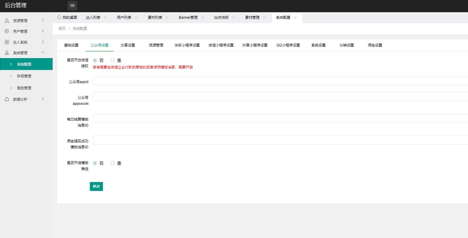 系统近200个左右功能模块,带达人入驻系统