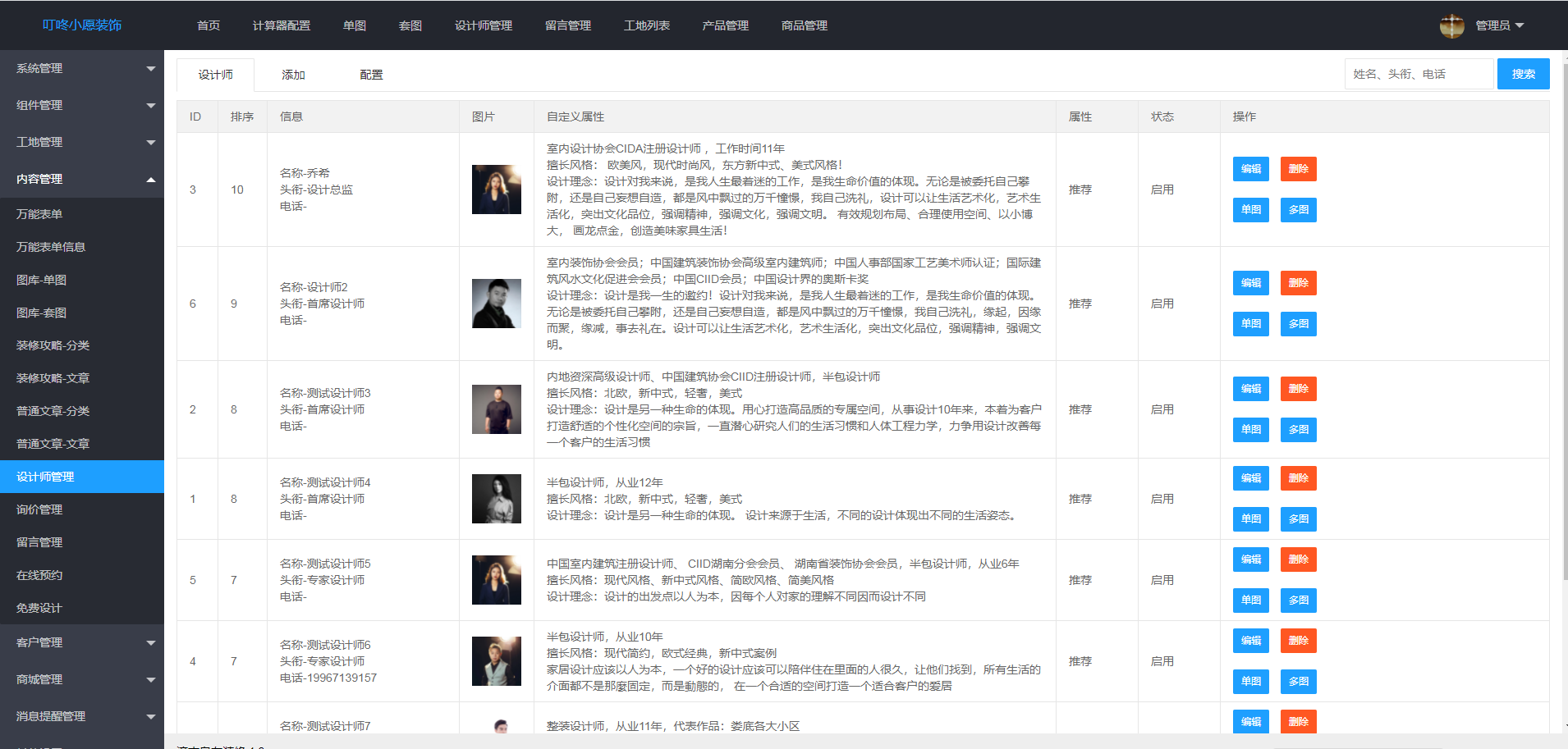 内容管理:在线表单、装修案例图库(单图、多图)、文章分类、