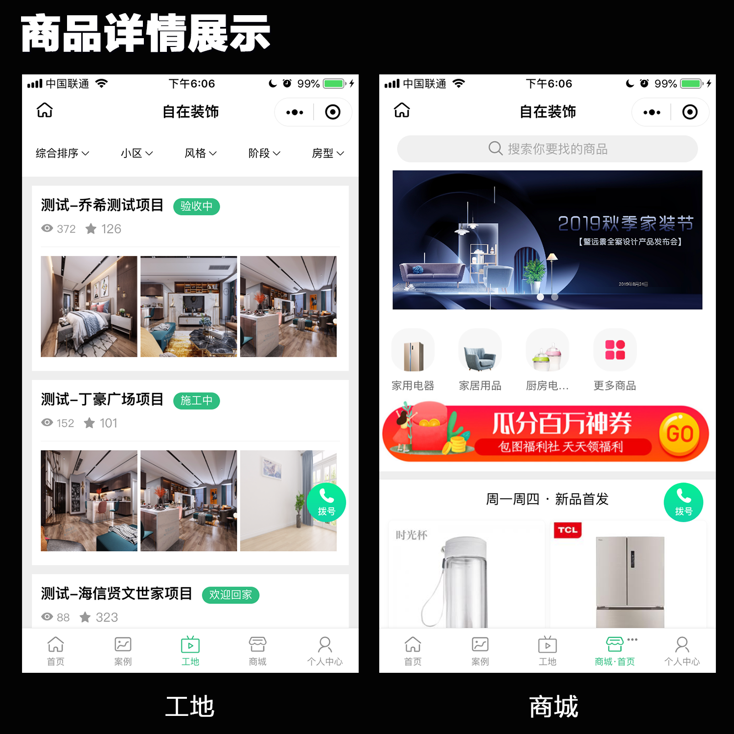 工地管理:小区管理、工地列表、工地进度、房型、装修风格