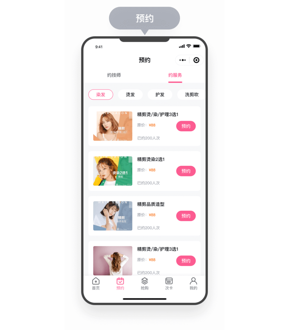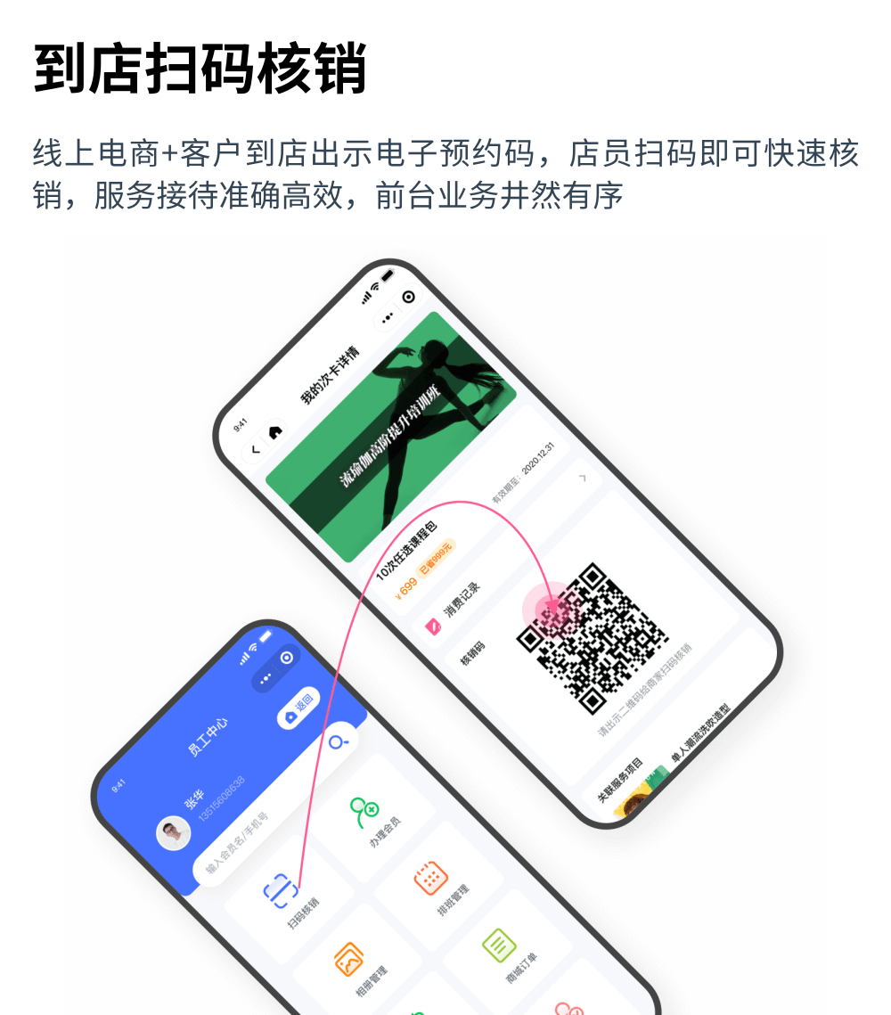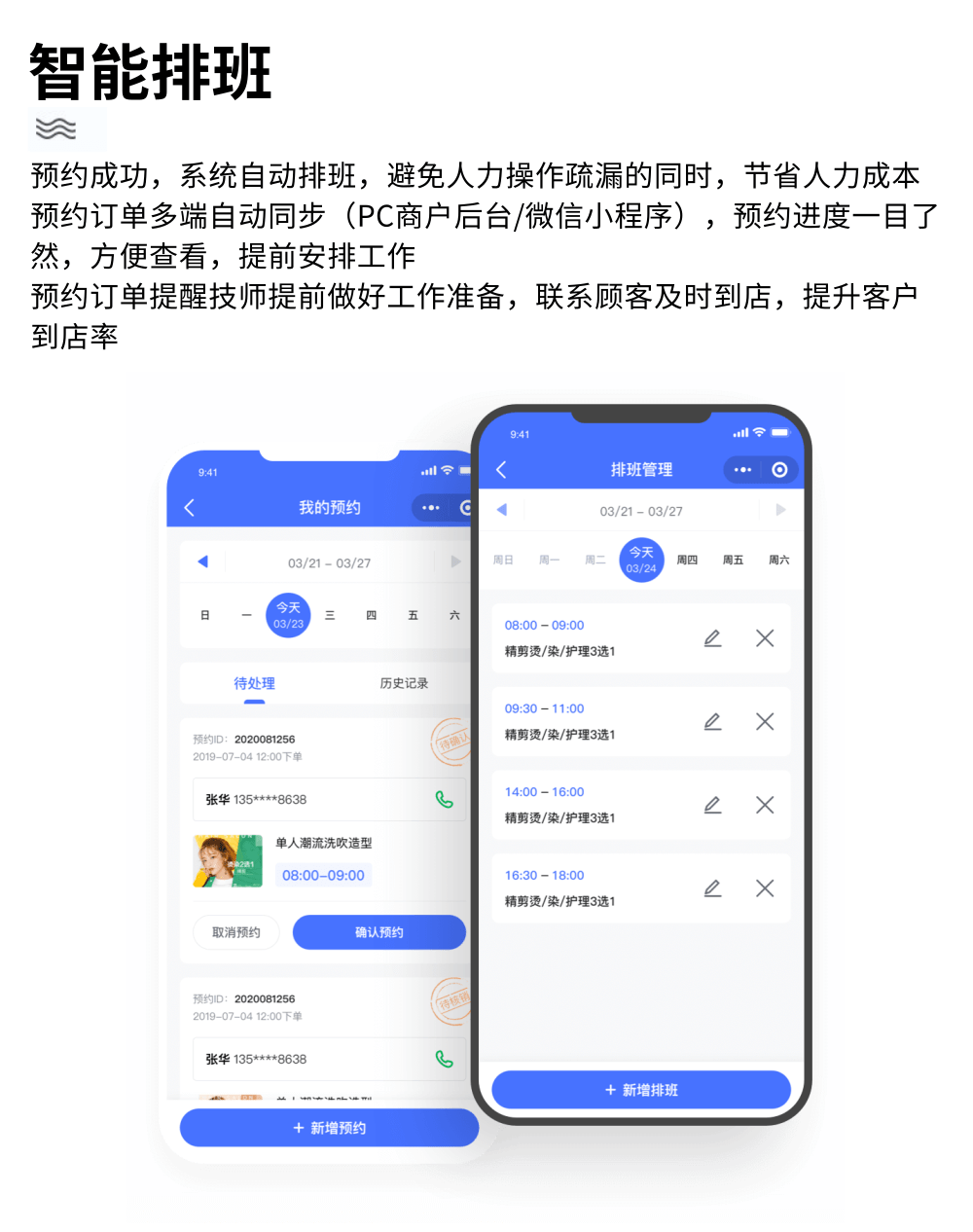 会员管理、次卡管理、服务管理、技师管理、排班管理、技师预约、核销管理、员工管理、业绩管理、运营报表、营销活动