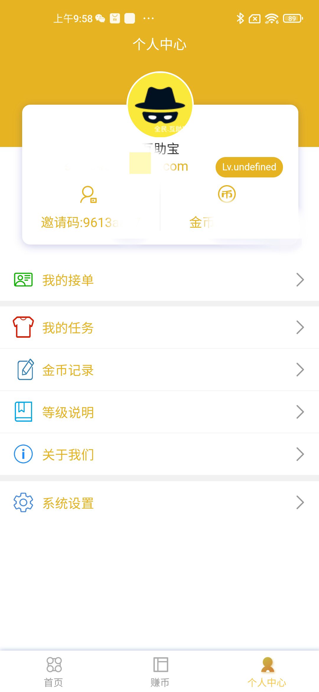 – 显示个人头像,昵称,邮箱,邀请码,金币等基本信息。