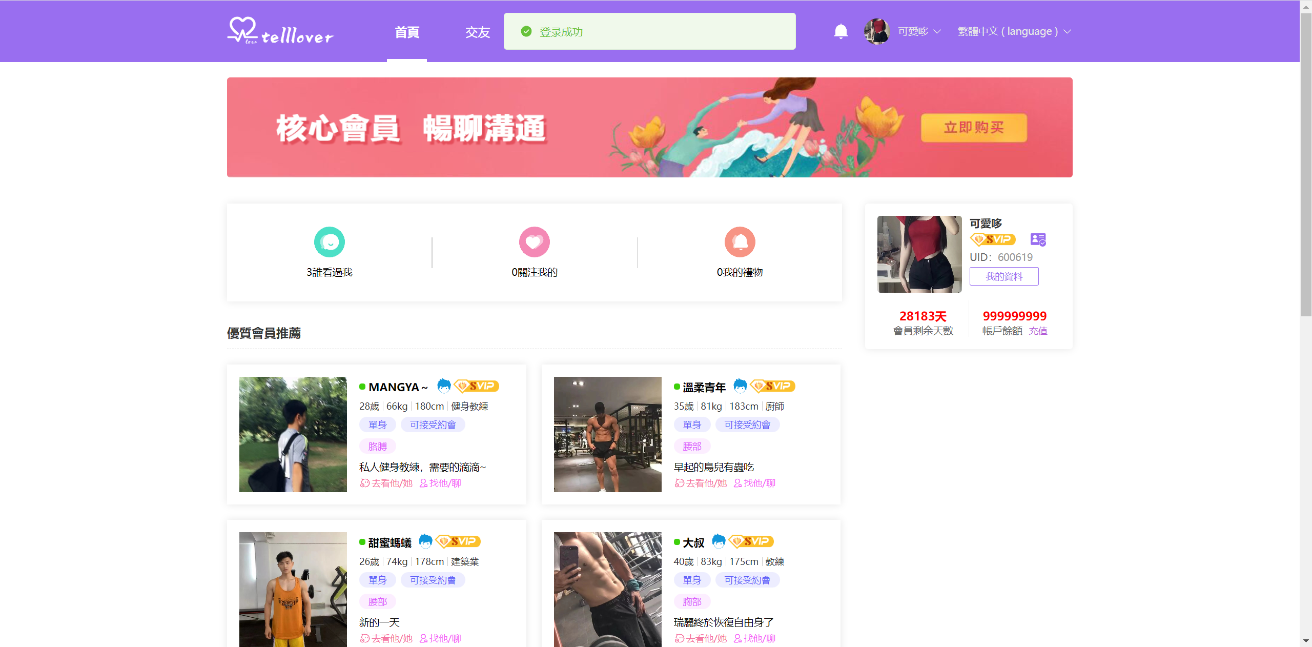 项目简介:项目之前是在台湾运行,做在线聊天约会业务,有会员等级划分,礼物赠送等变现功能。