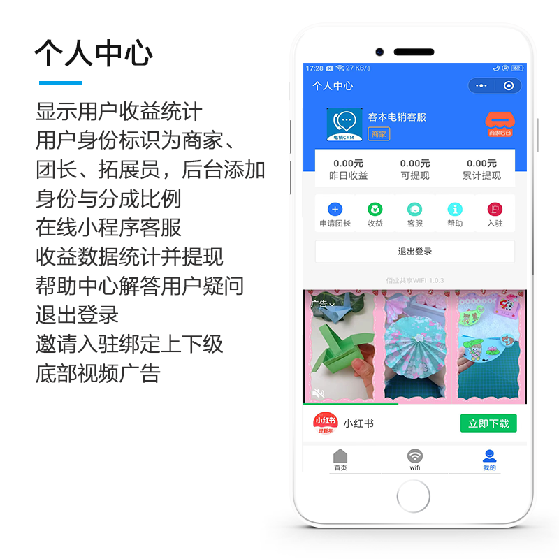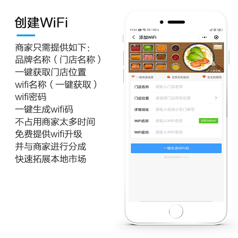 共享wifi一键链接,平台对接小程序流量主实现别人连wifi你躺赚广告收益,每次连接都有0.3元左右广告分成