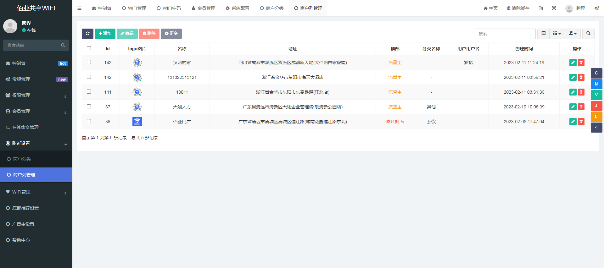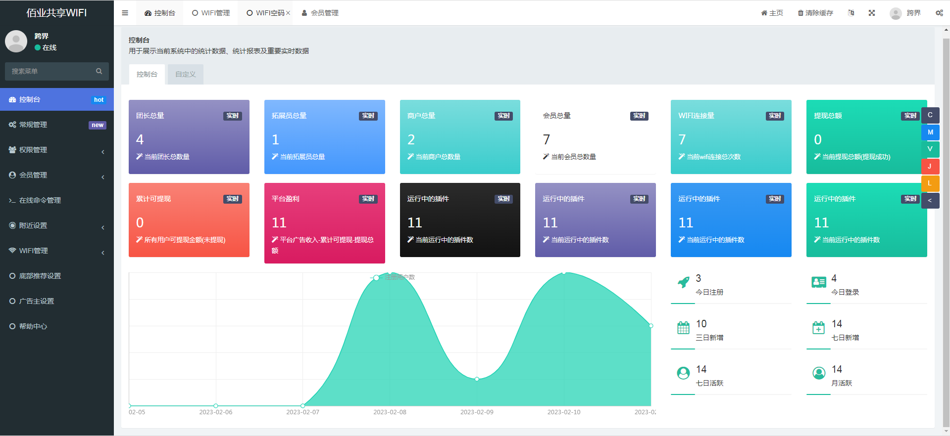 演示后台:http://bycswifi.baiye.shop/baiye.php