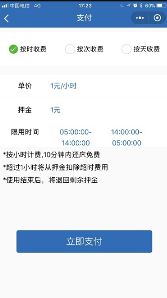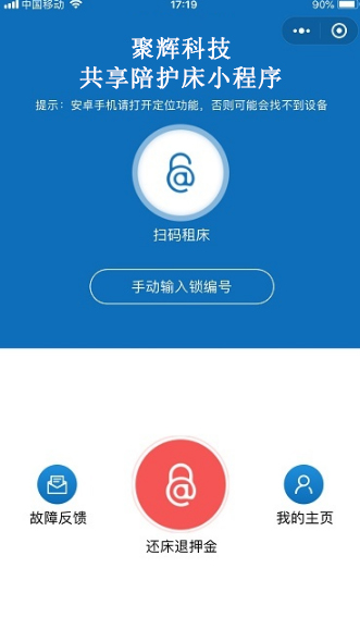 用户在使用完共享陪护床之后,把床变回原样,通过共享陪护床小程序进行关锁归还,小程序会根据用户使用的时间计算出费用。
