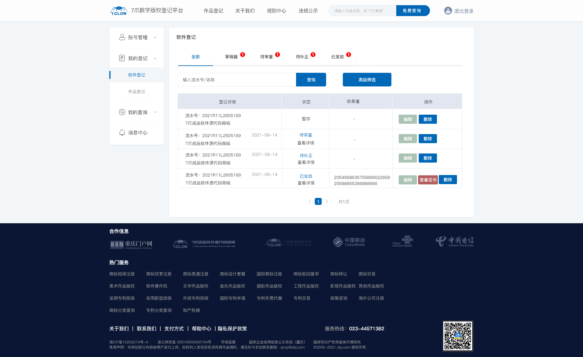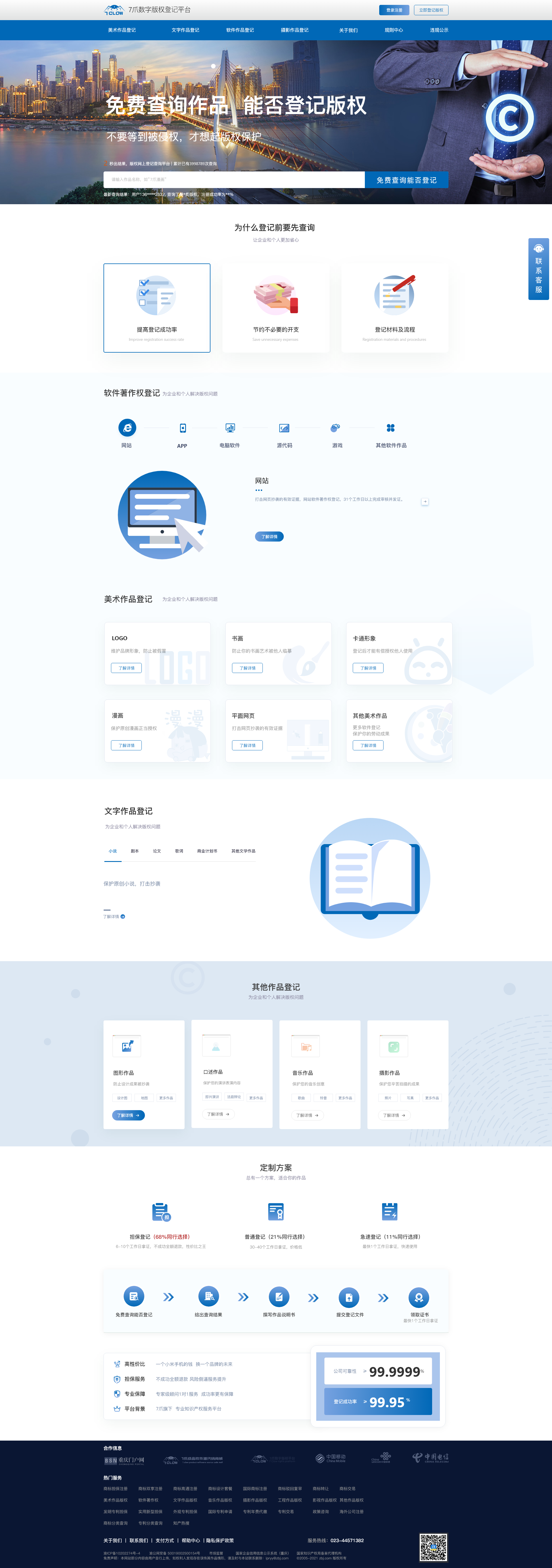 免费查询能否登记 给出查询结果 撰写作品说明书 提交登记文件 领取证书 最快1个工作日拿证 登记流程: 1、免费查询能否登记2、给出查询结果
