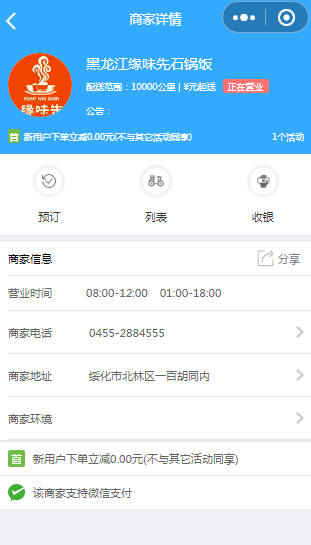 外卖餐饮小程序带商城系统餐桌预定点餐寄存排队等待在线点单程序